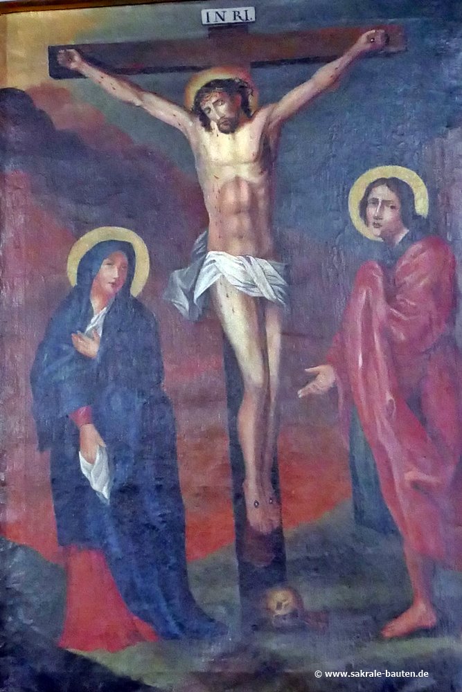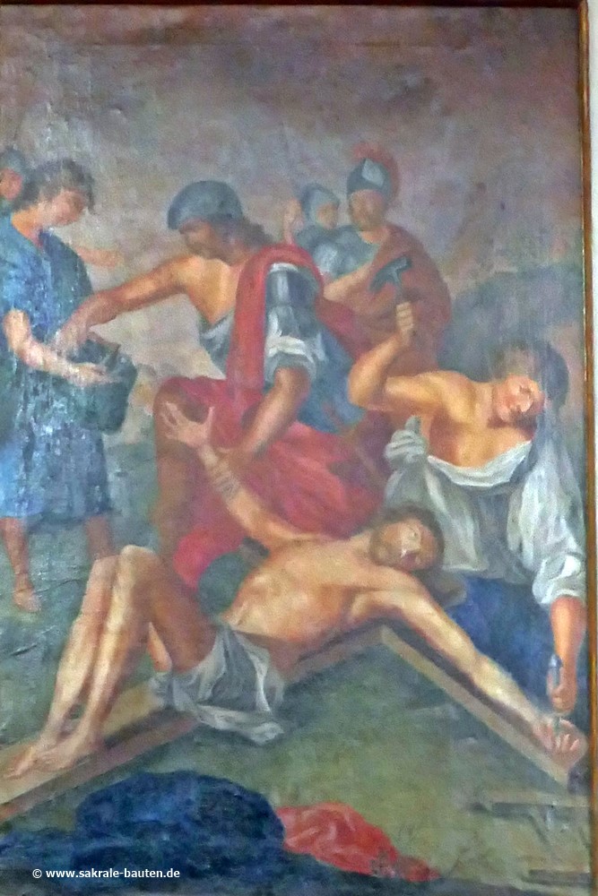 Die Kreuzwegstation heißt zwar "Jesus stirbt am Kreuz", doch das Bild zeigt den am Kreuz Gestorbenen,