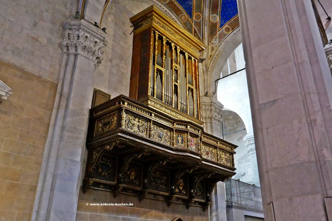 von denen sich jeweils eines auf einer kleinen Tribüne im jeweiligen Seitenschiff befindet, in unmittelbarer Nähe zum Querschiff.
