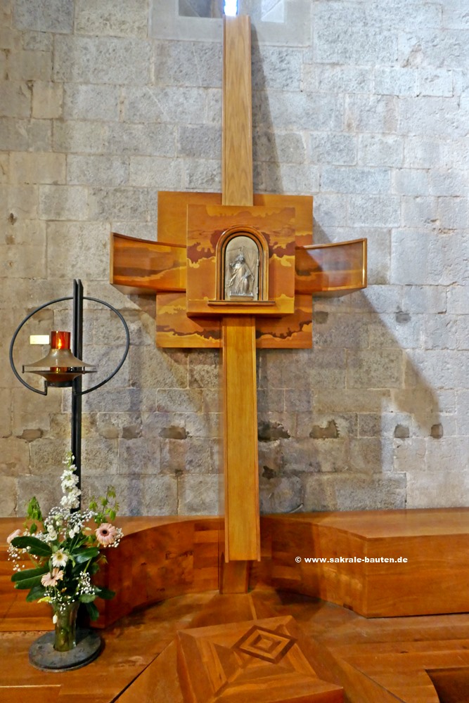 Tabernakel: Zeitgenössisches Kunstwerk des Bildhauers Adriano Mancini. Hauptaltar: Er besteht aus einer vorderen Steinplatte.