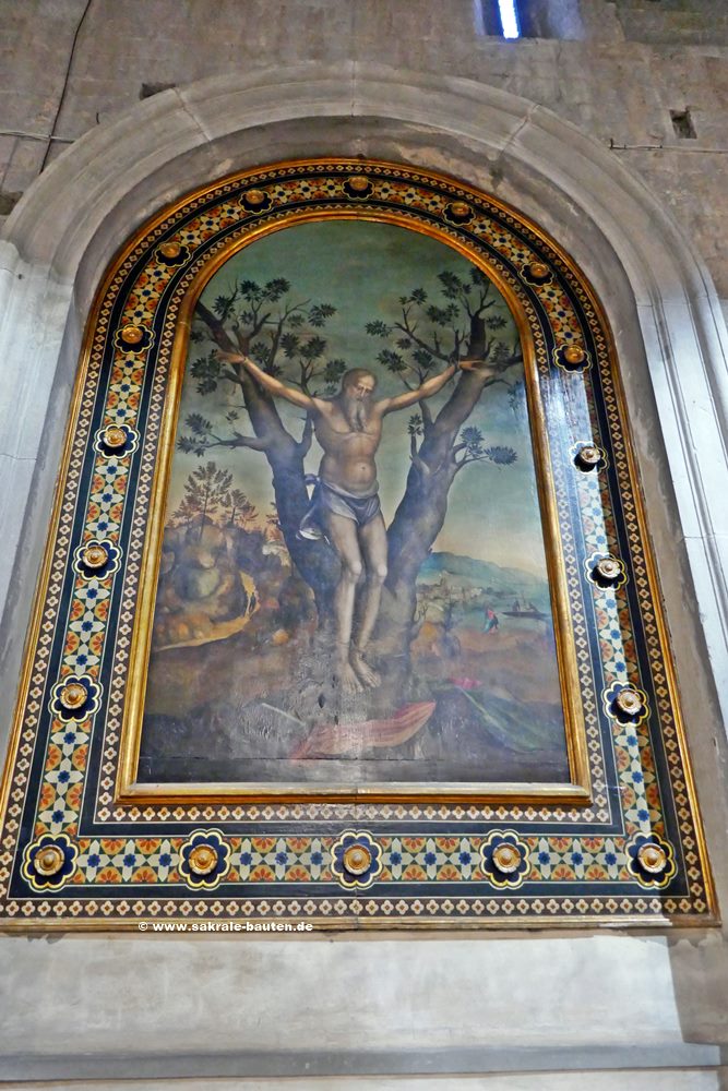 Bild 2: Tisch der Madonna der Demut, signiert von Niccola di Mariano di Siena am 17. Juli 1492. Bild 3: Hölzernes Kruzifix, gemeißelt von G.Pisano, eingeschlossen in einem Tabernakel aus weißem Marmor von Benedetto da Rovezzano.