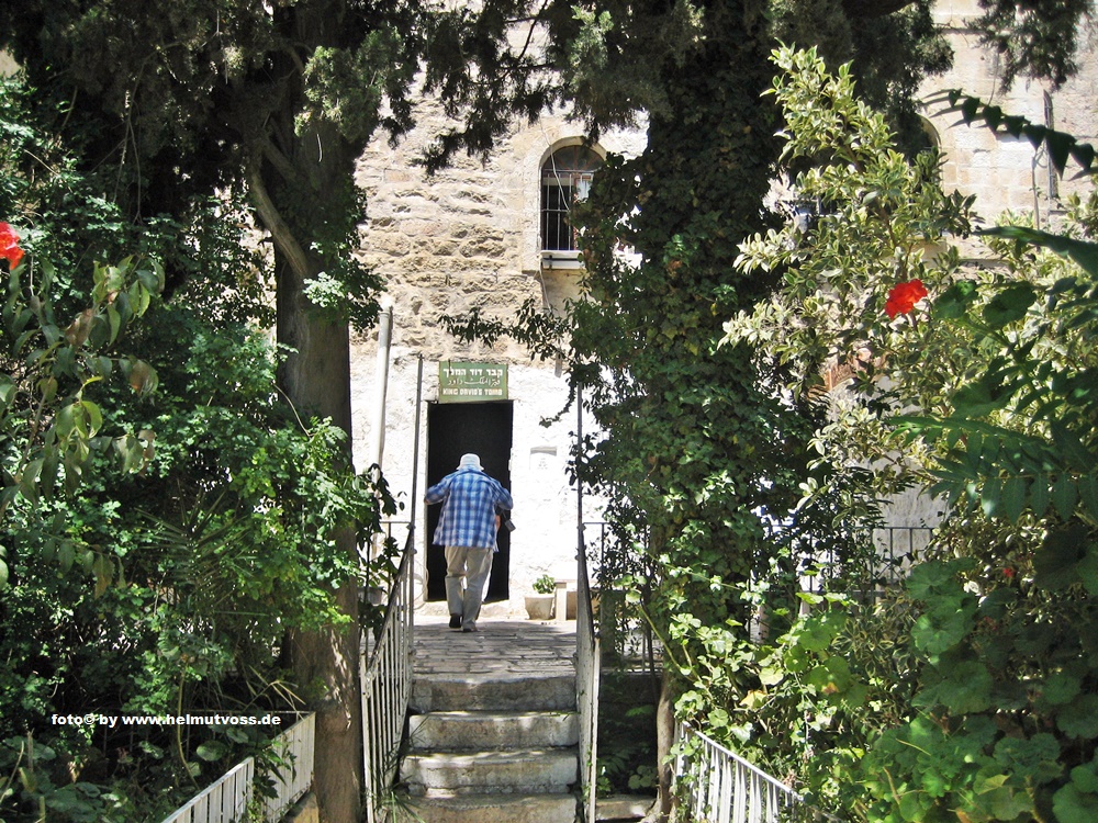 In einem Nebenraum verehren die Juden das Grab Davids, einen Steinsarg,