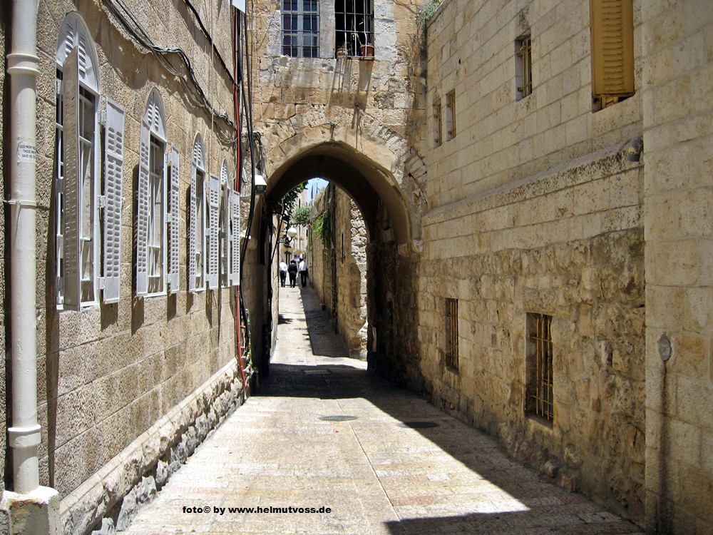 Vom Zionsberg gelangt man durch das Zionstor von Muslimen auch Bab en-Nebi Daud (Davidstor) genannt, in die Altstadt hier das jüdische Viertel.