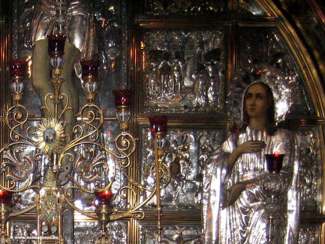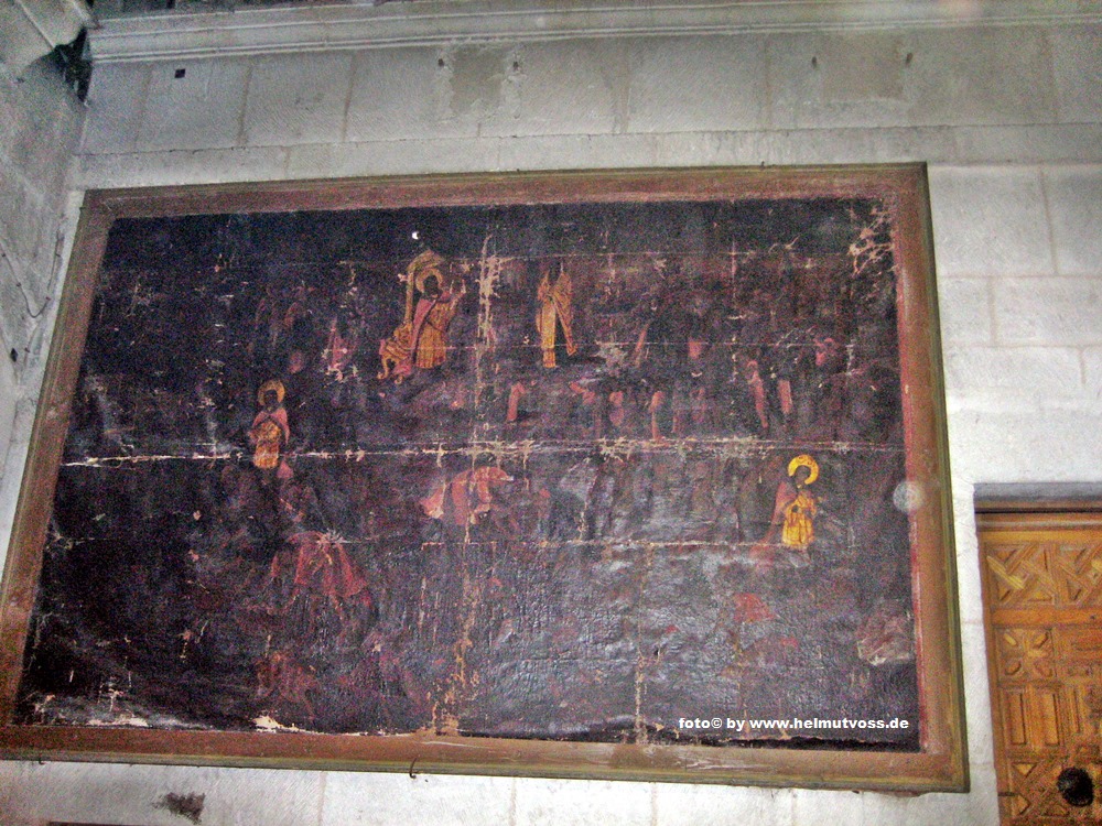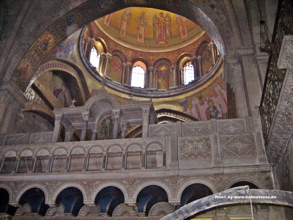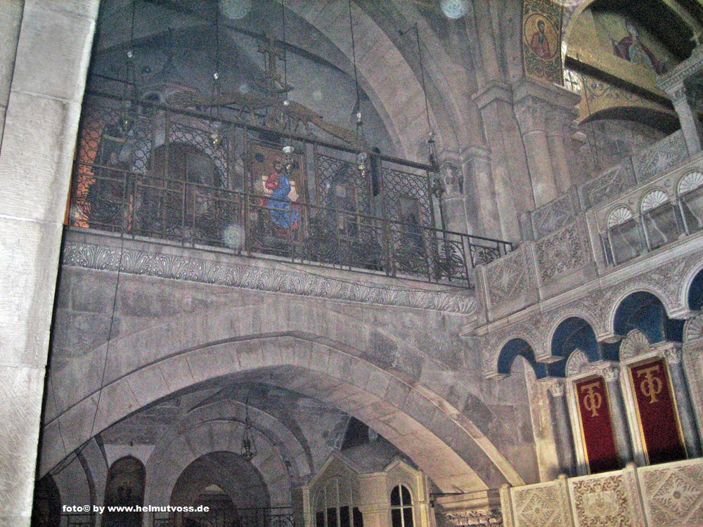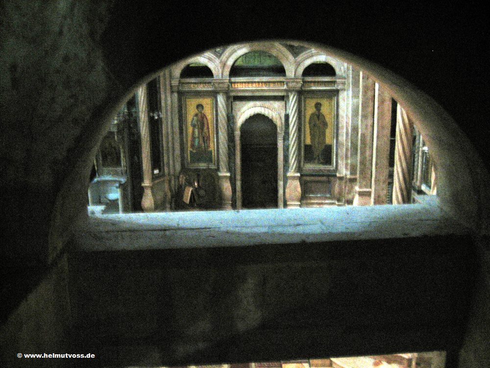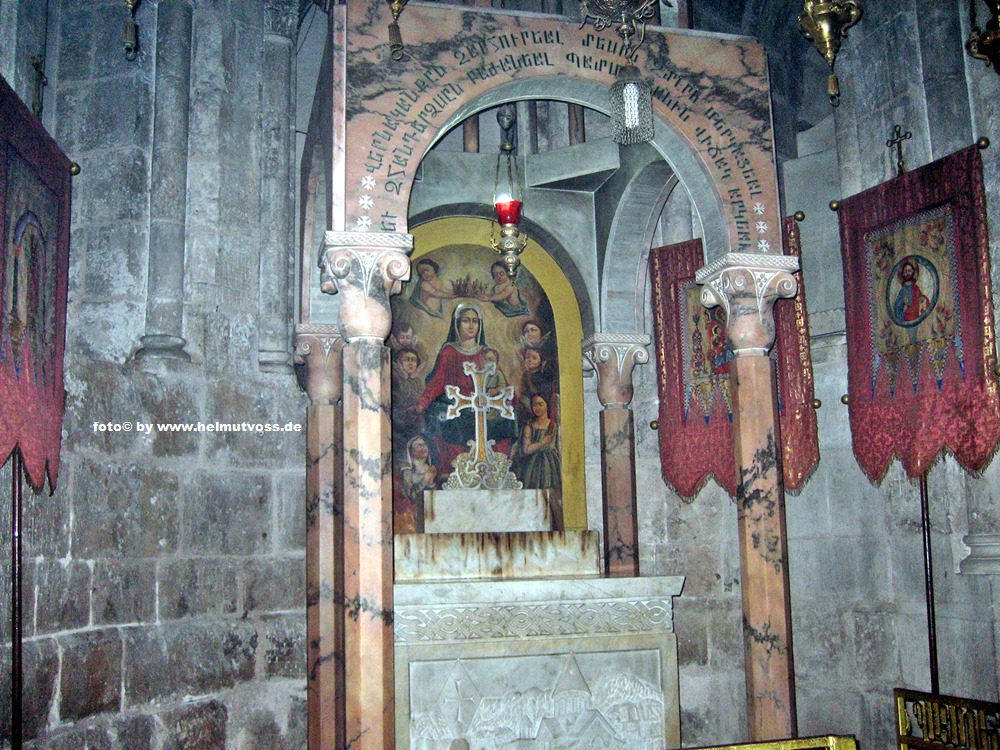 Bild 2: Auf tieferem Niveau als der Kircheneingang befinden sich die armenisch-orthodoxe Helena-Kapelle. Das Altarbild zeigt die Krönung Mariens.