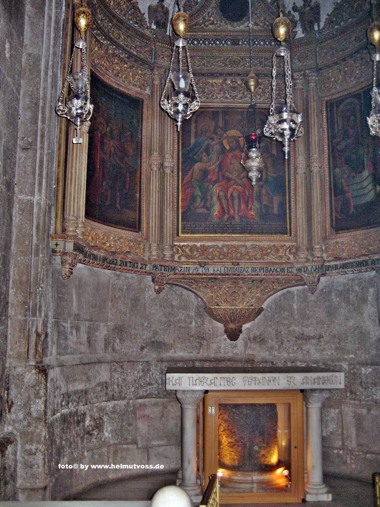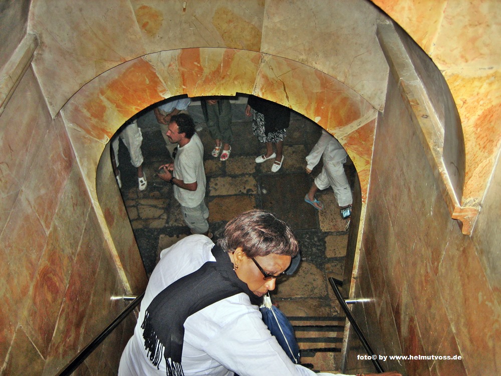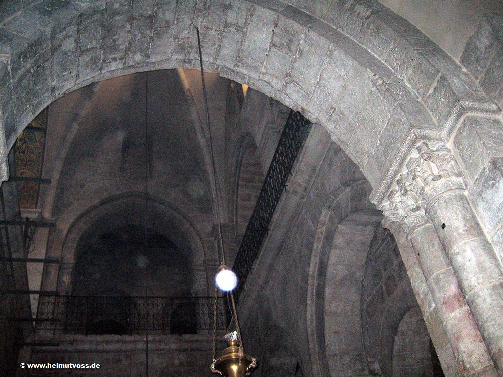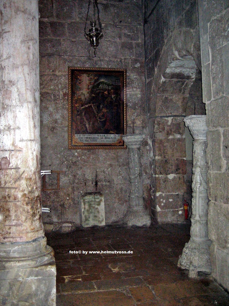 Wir gehen rechts in der Grabeskapelle in den alten Bereich der Kirche, er ist wegen der vielen Kapellen und Krypten, Grotten äußerst unübersichtlich.
