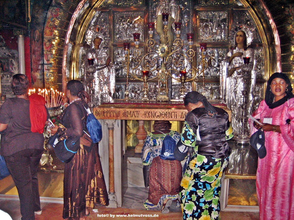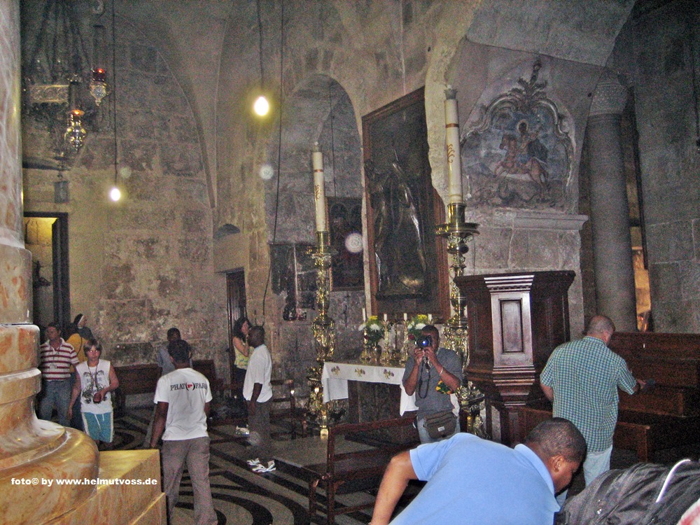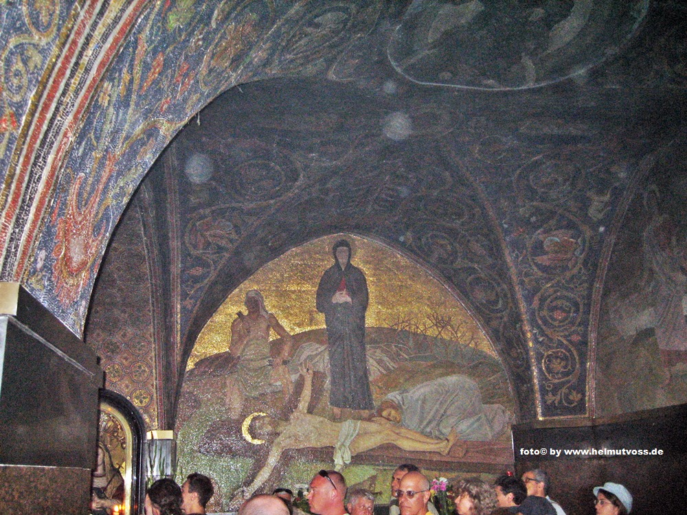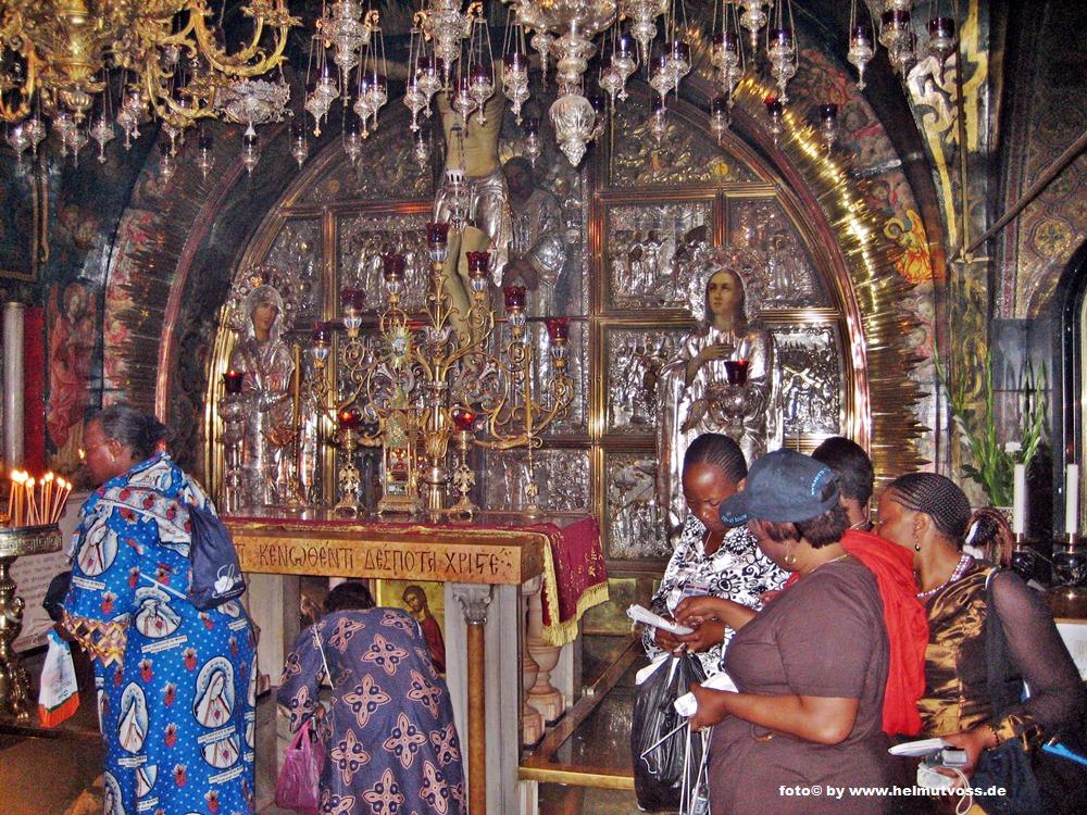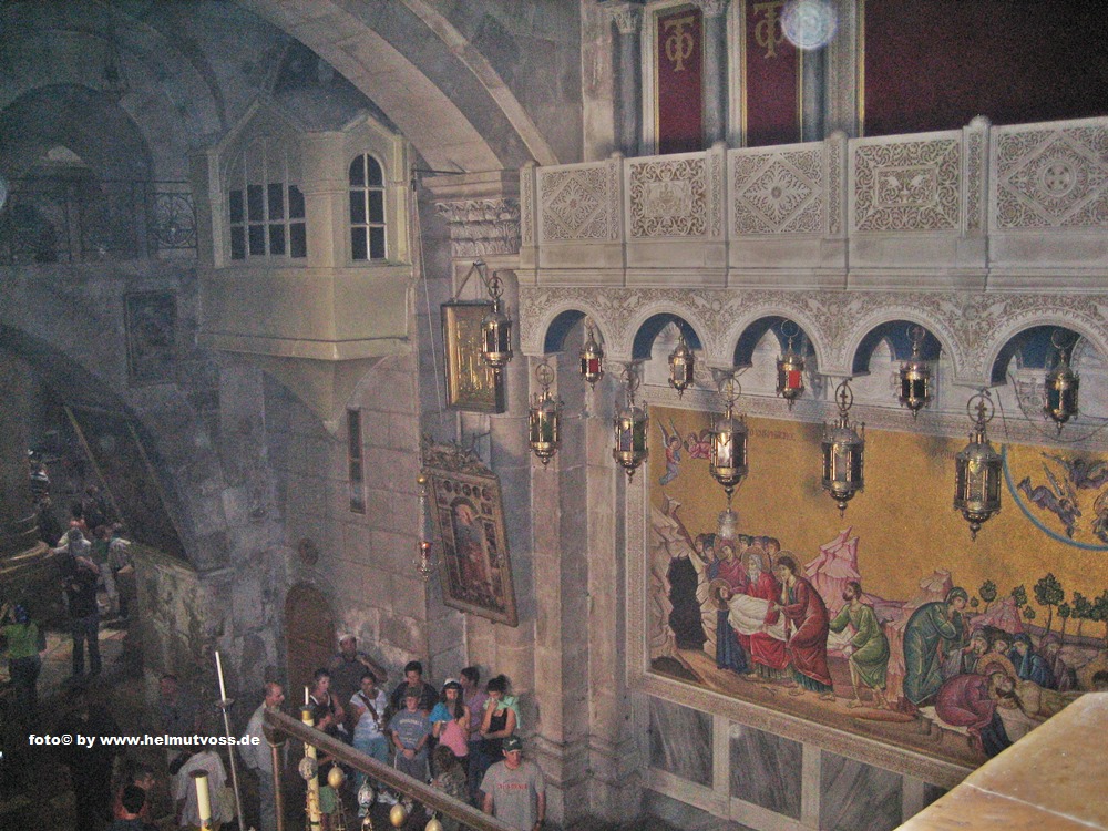 Wir gehen rechts in der Grabeskapelle in den alten Bereich der Kirche, er ist wegen der vielen Kapellen und Krypten, Grotten äußerst unübersichtlich.