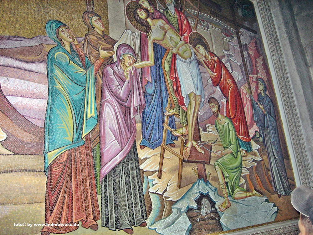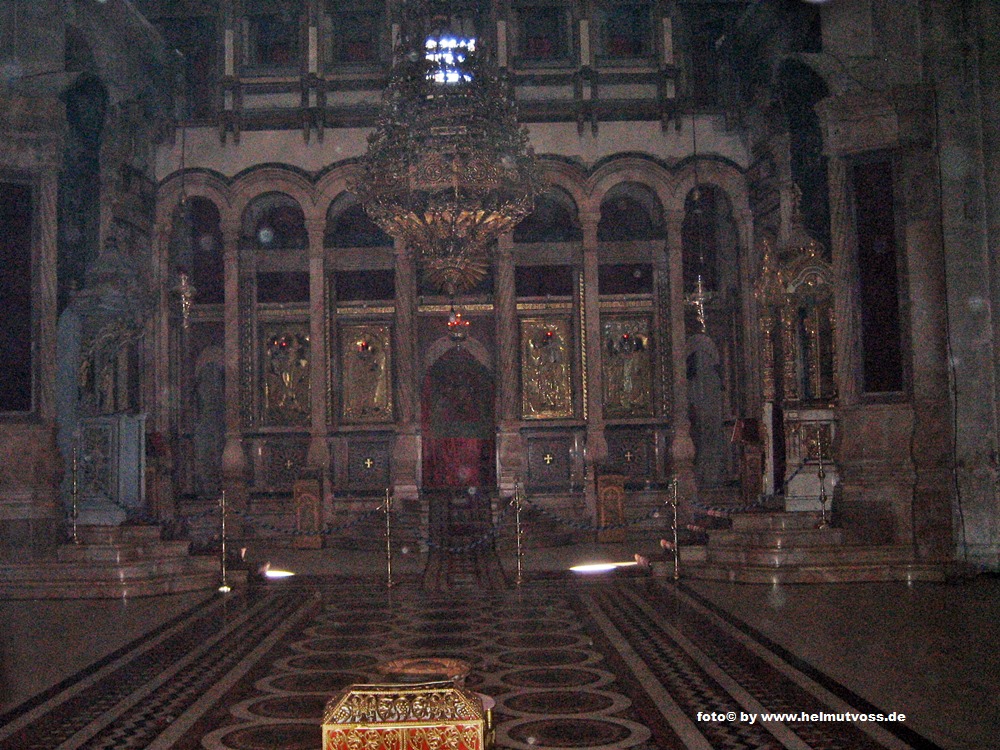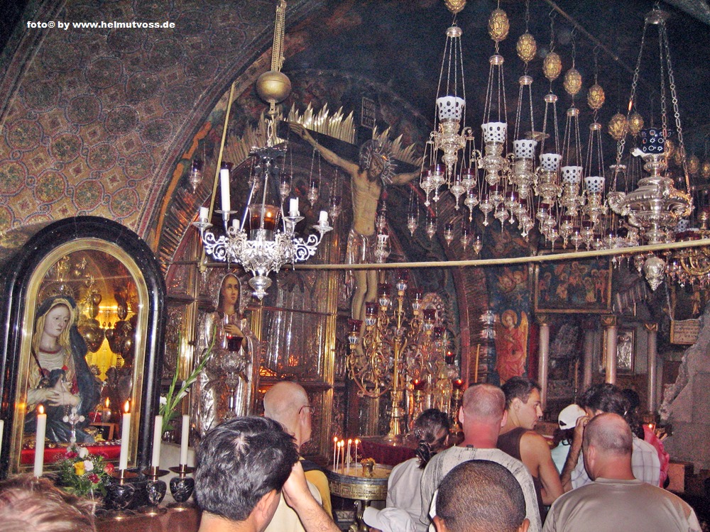 Dort ist auch der Orignalfelsen von Golgotha mit einem großen Spalt zu sehen.