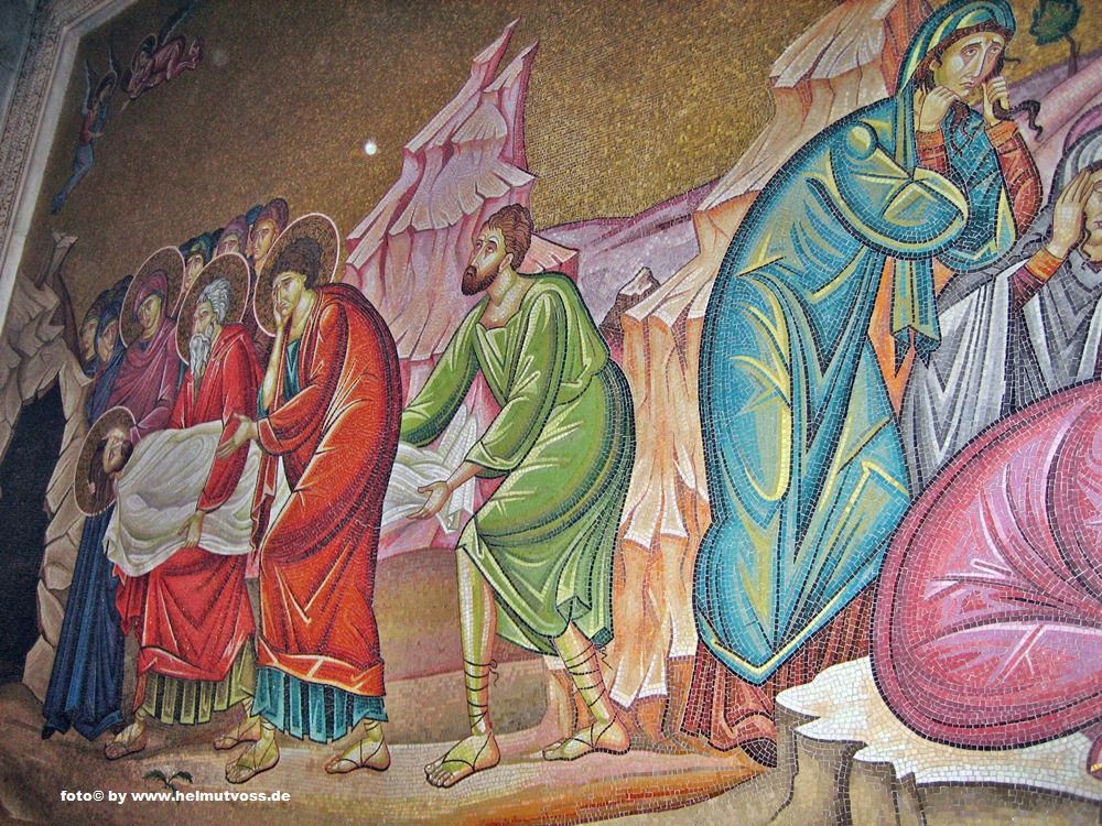 rechts neben der Kreuzigungsstelle auf Golgotha befindet sich eine mit Mosaiken prächtig ausgestaltete römisch-katholische Kapelle.