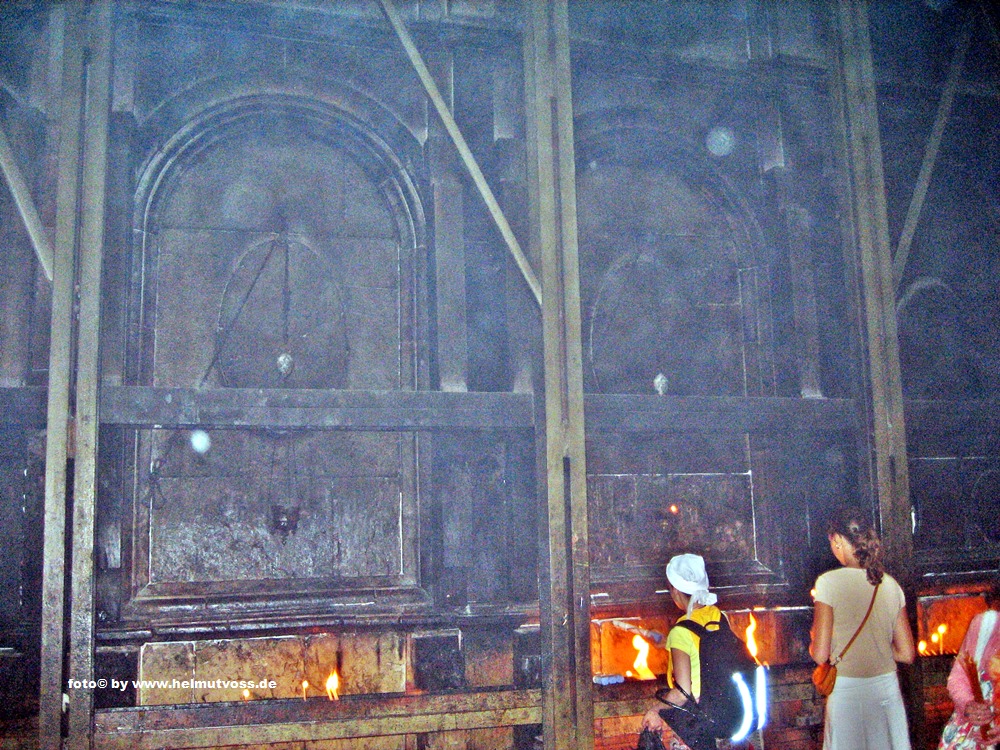 Der Raum des Christusgrabes ist sehr klein deshalb kommt es hier zu großem Gedränge und zu langen Wartezeiten.