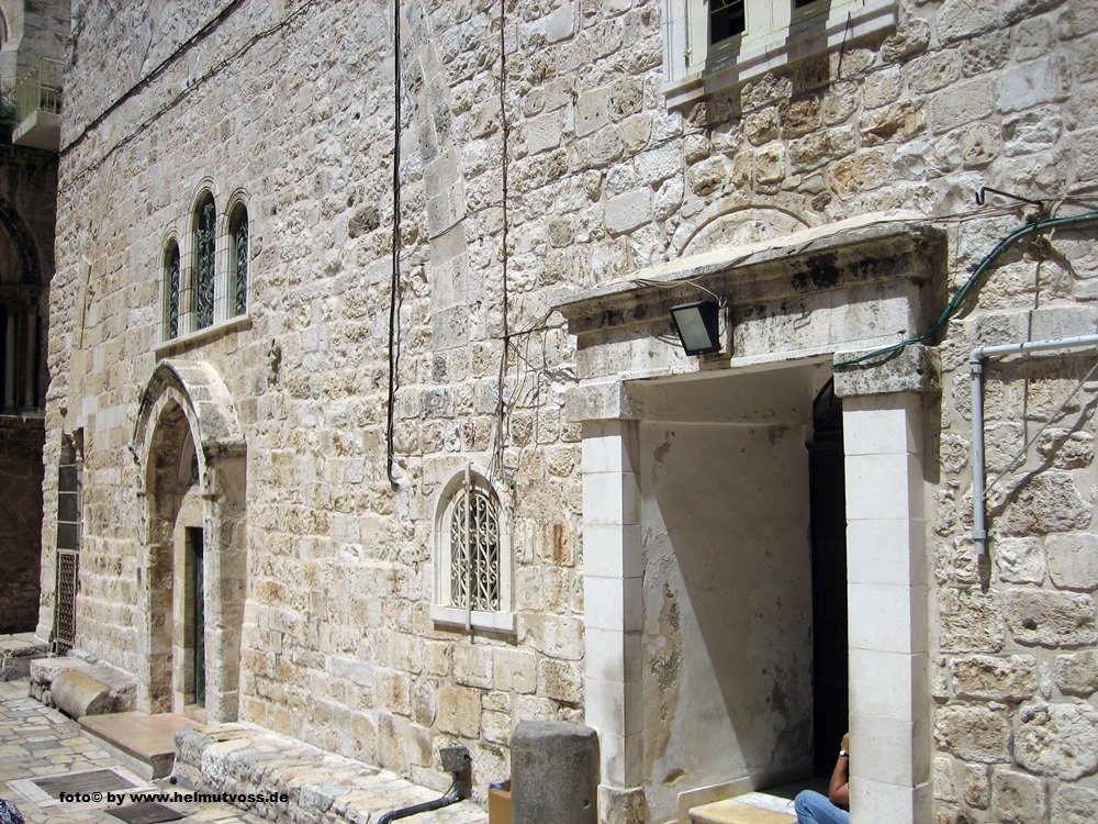 Rechts neben dem zugemauerten Eingang zur Grabeskirche erreicht man über Stufen die Kapelle der Kleiderverteilung.
