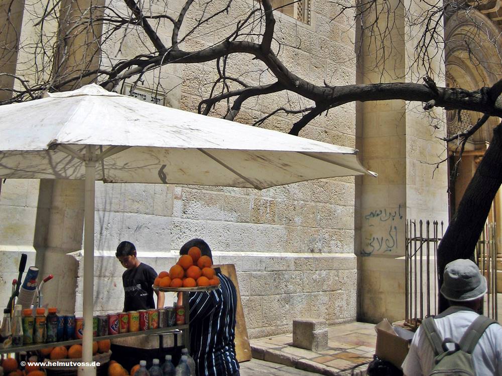 Hier endet unsere Jerusalemtour um 15:20 Uhr. Wir stöbern noch etwas in den umliegenden Souvenierläden und machen am Muristanbrunnen eine kleine Pause.