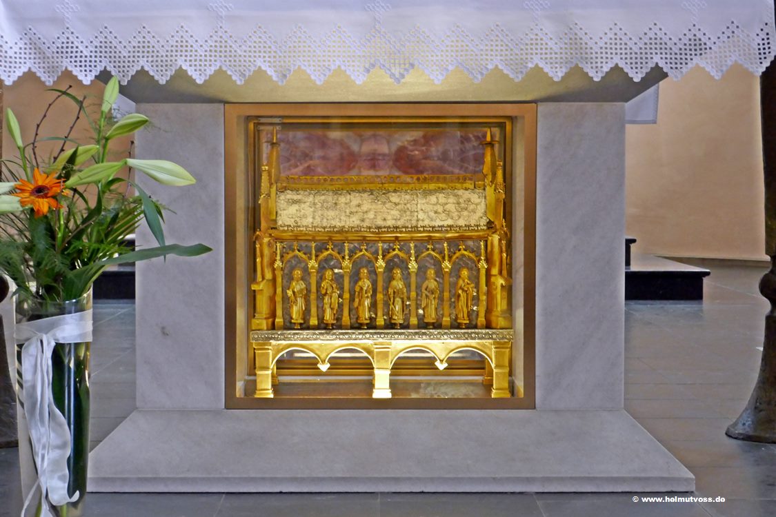 Es wurde ein neuer Zelebrationsaltar aus Stein aufgestellt, in dessen Sockel der Corneliusschrein eingestellt ist.