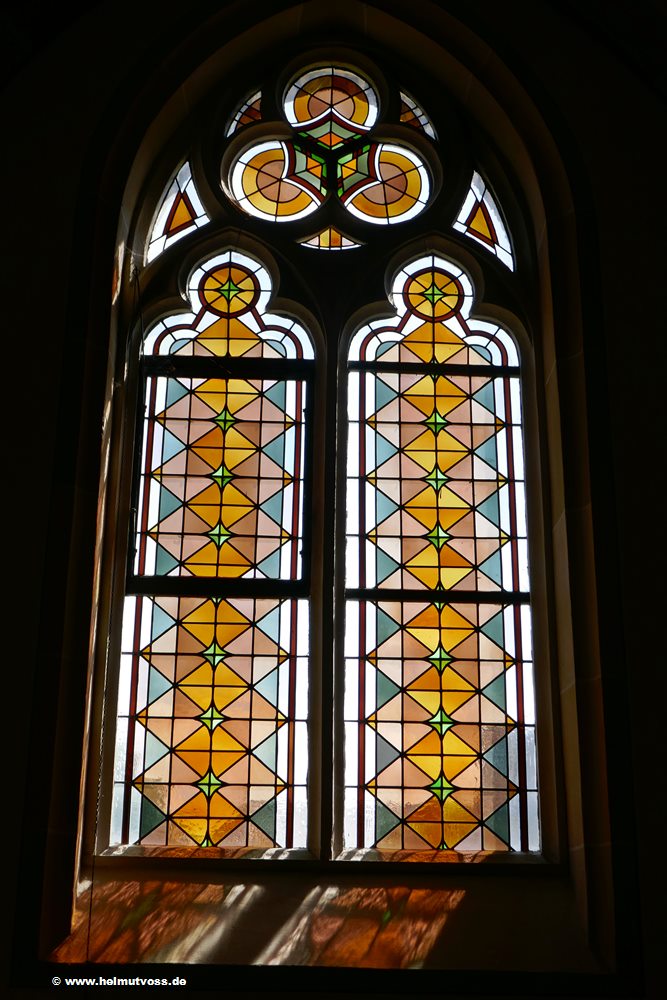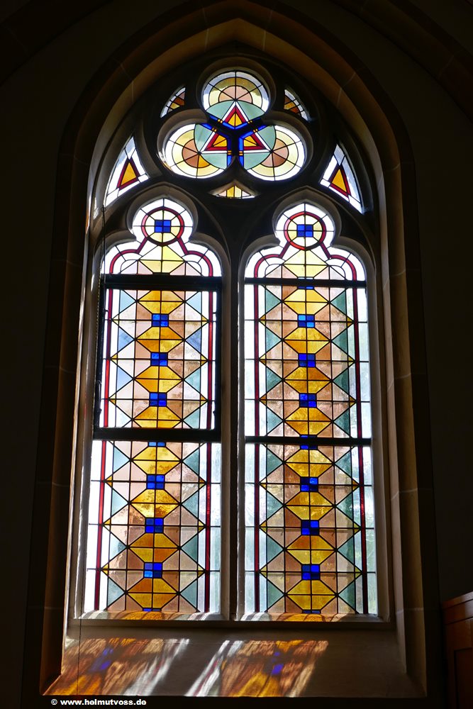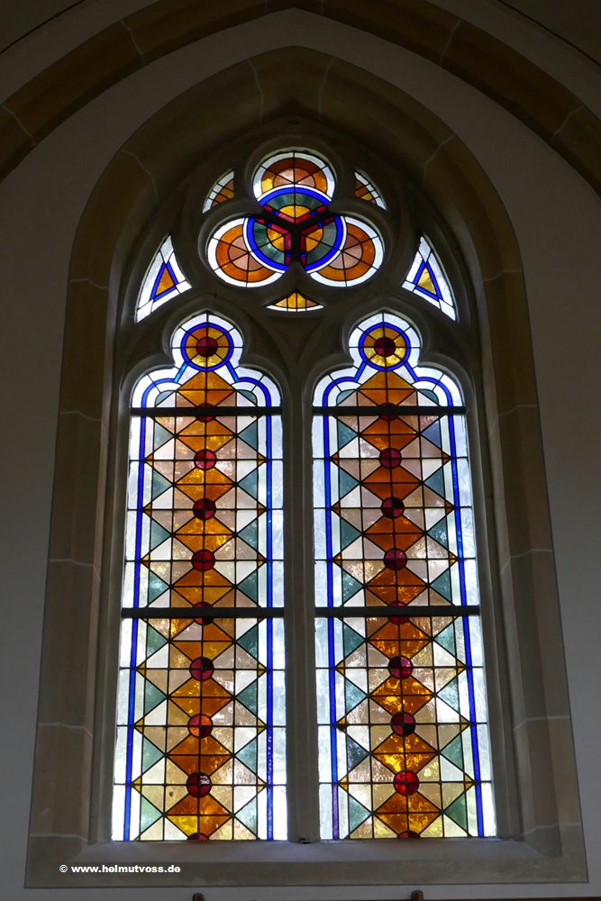 Fenster im Seitenschiff, Geometrisches Ornament. Künstler unbekannt, um 1955.