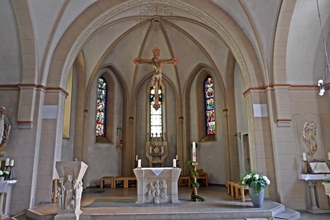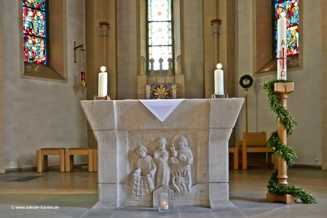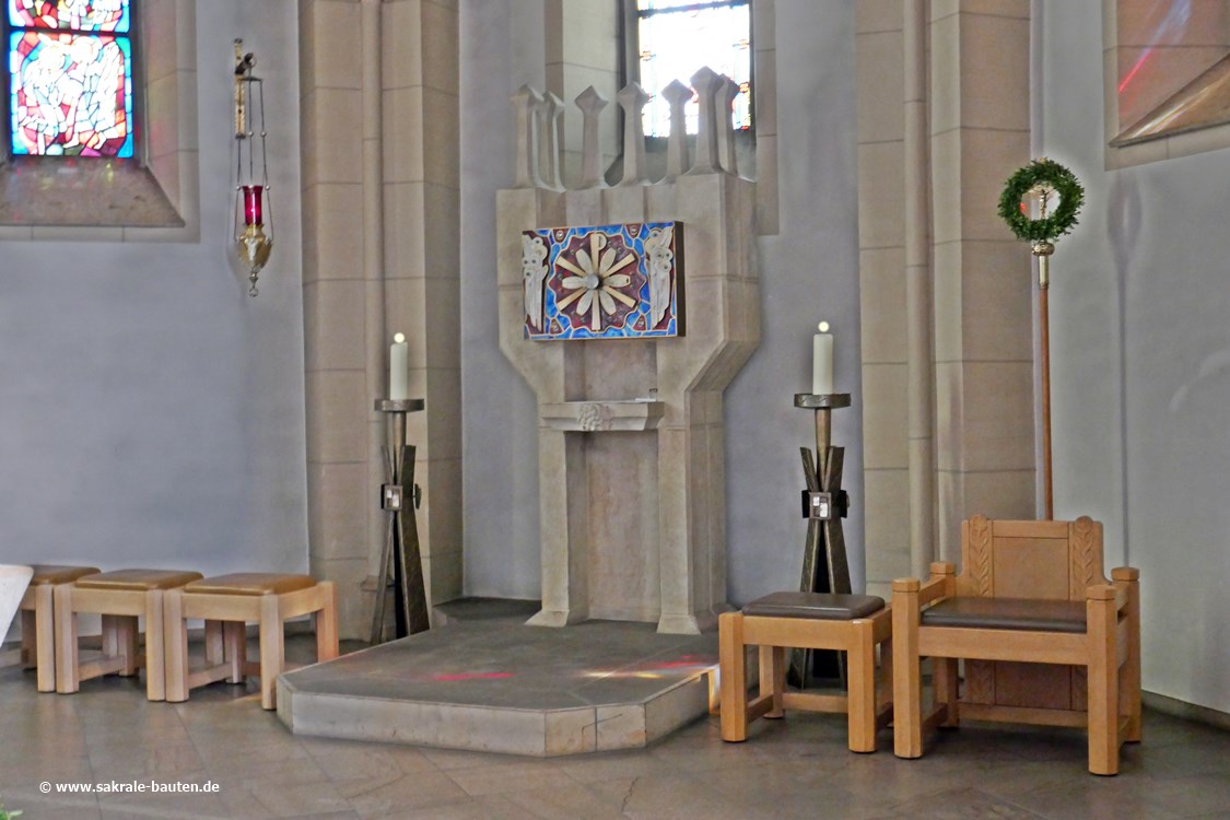 Bild 2: Die Mitte der Choranlage nimmt der Altar ein, aus einem Sandsteinblock geformt.