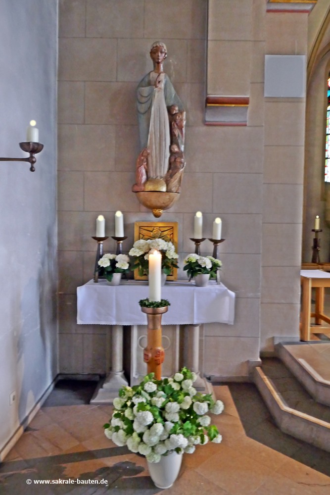 Die Schutzmantelmadonna des Bildhauers Heinrich Erdenkötter aus dem Jahre 1963 verweist hier auf den Ort der Marienverehrung.