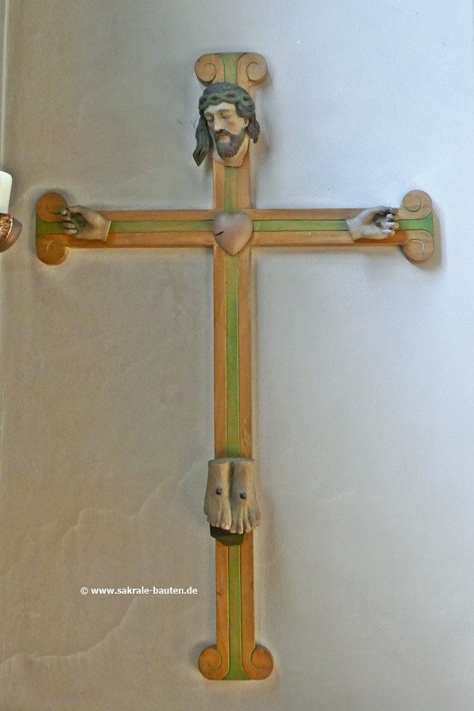 Bild 1: Der Chorbogen rahmt das neugefertigte Triumphkreuz als Hauplbildwerk geradezu ein.