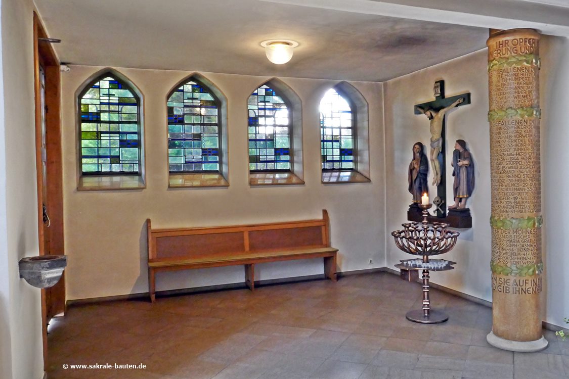 Bild 3: Die kleine Vorhalle unter der Südseite der Orgelbühne ist als Andachts- und Gedenkraum für die Toten der Gemeinde gestaltet.