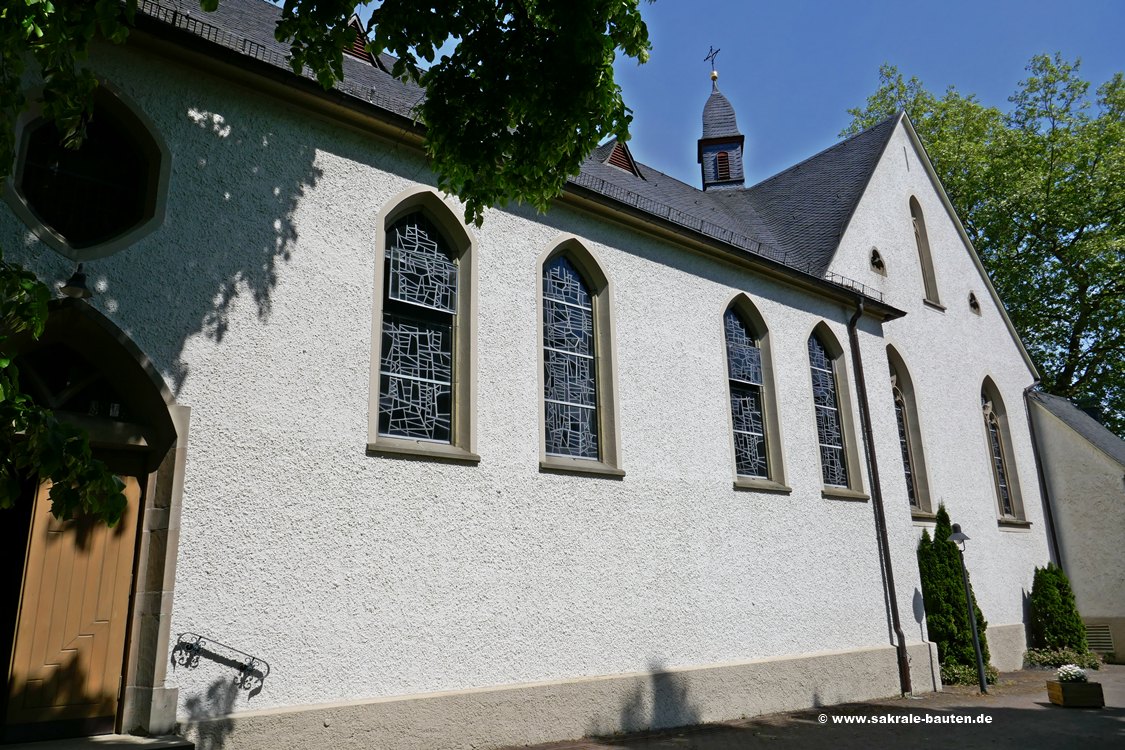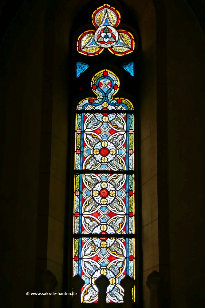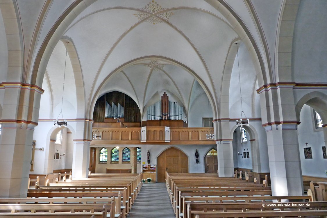 Die neugotische, verputzte Hallenkirche mit 5/8-Schluss und breitem Mittelschiff, in die schmalen Nebenräume wurden Tonnengewölbe eingezogen.