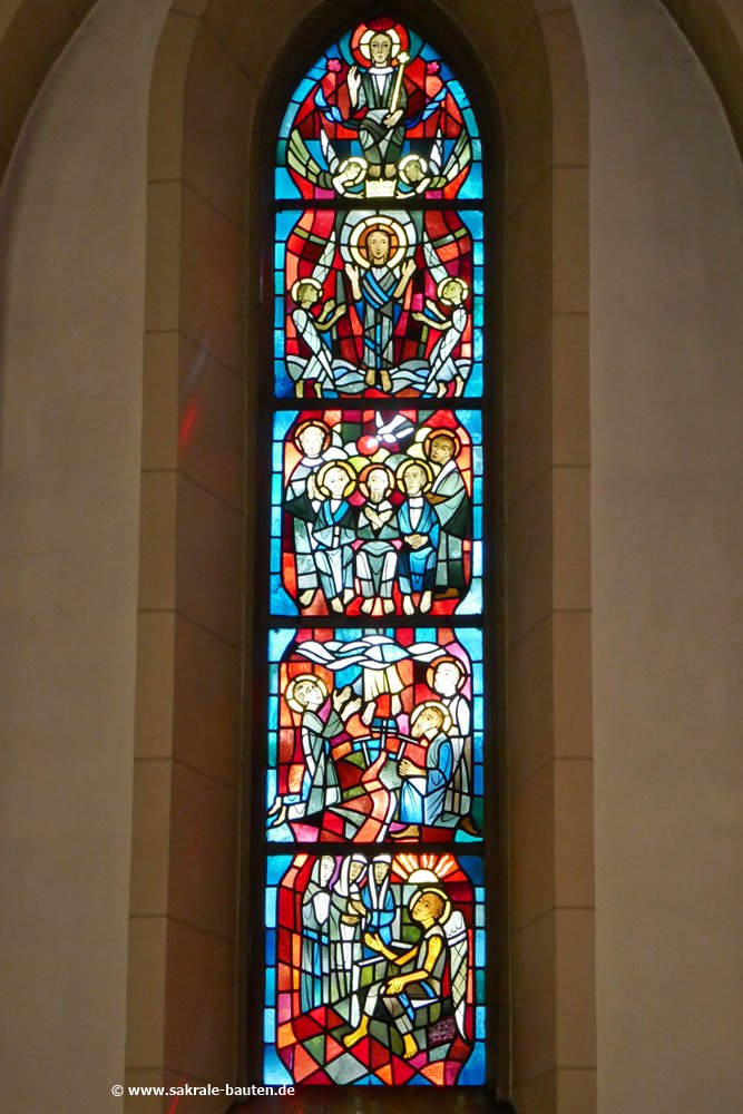 Bild 2: Das Mosaik "Die Geistsendung" auf der Wand über der Altarstele verdeutlicht das Wirken des Heiligen Geistes im Sakrament der Taufe und im Leben.