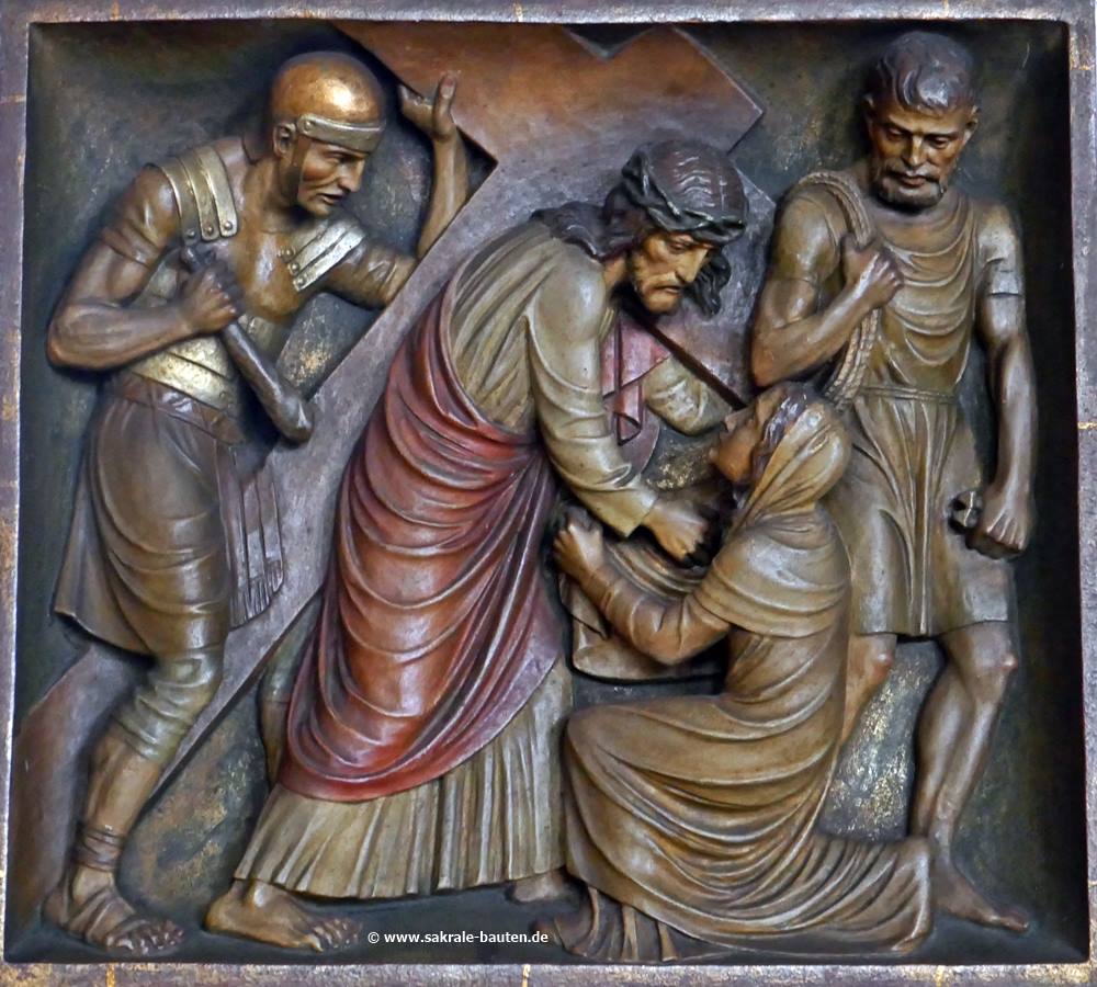 Auch diese Kreuzwegstation hat keinen biblischen Ursprung. Was das Bild ausdrückt Veronika ist eine sonst unbekannte Frau,