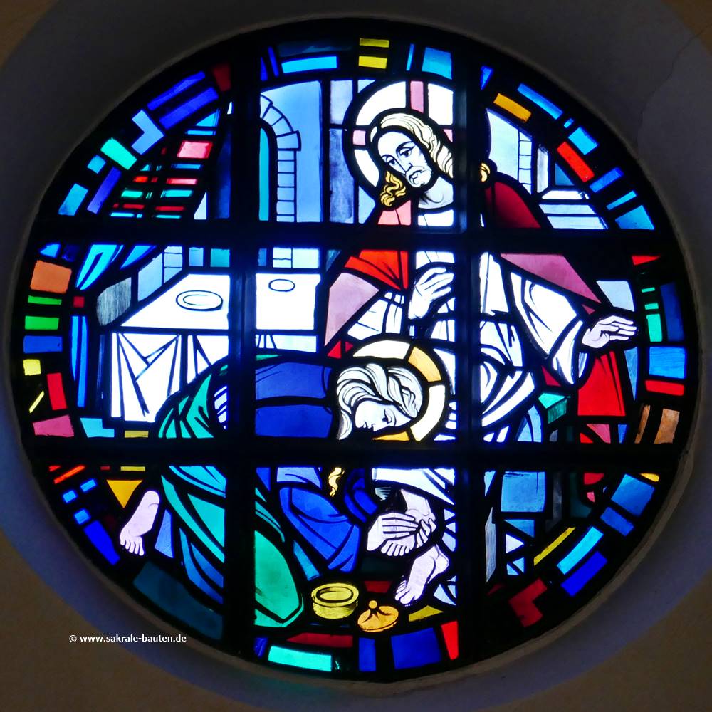 Bild 2: St. Maria Magdalena salbt die Füße von Jesus.
