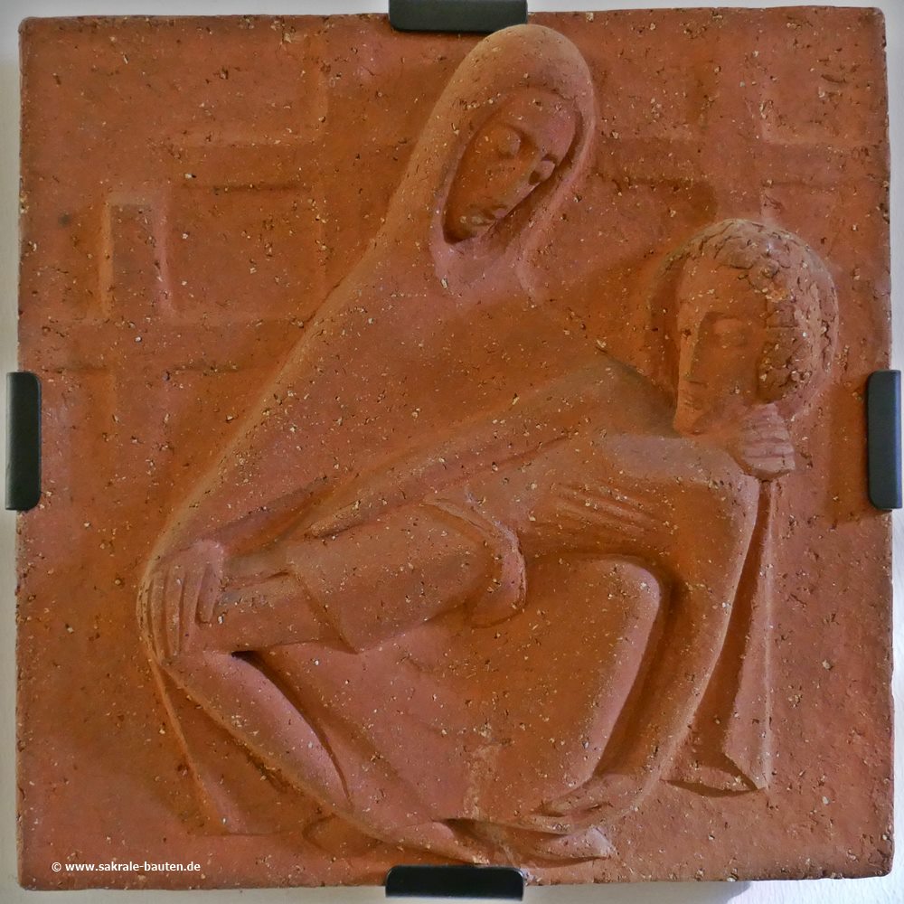 Der tote Sohn im Schoß der Mutter wird nicht eigens erwähnt. Skulpturen dieser Art, bekannt als Vesperbilder, sind häufig an Wallfahrtsorten zu finden. Dort pilgern die Menschen hin, um zu sehen und zu beten.