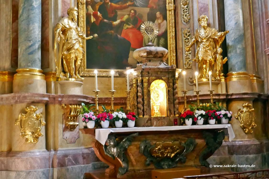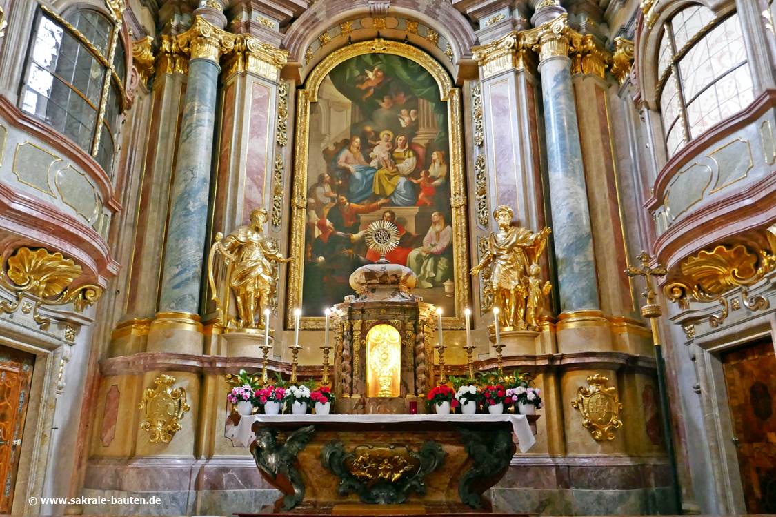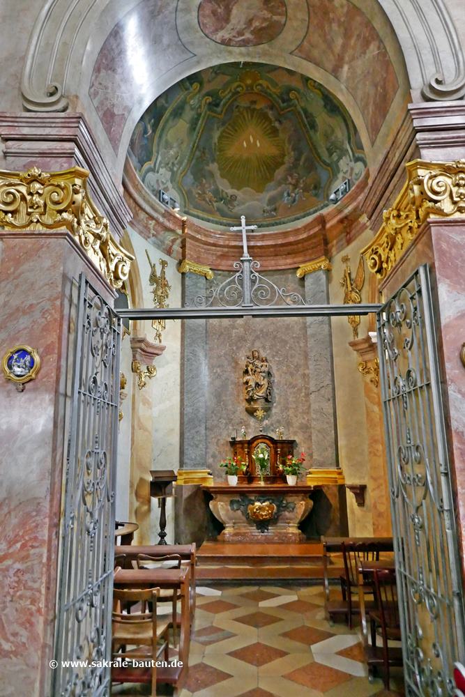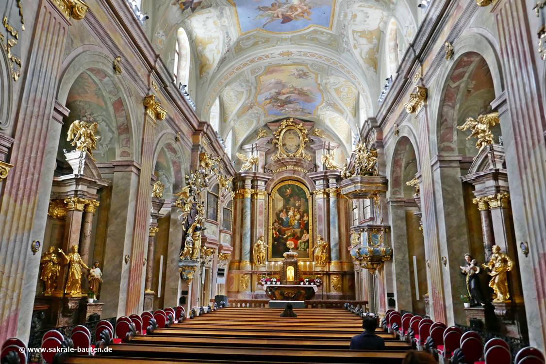 eines Schülers von Andrea Pozzo, unter Mitarbeit von Daniel Gran und Johann Georg Schmidt. Gran schuf das Hochaltarbild Heilige Familie.