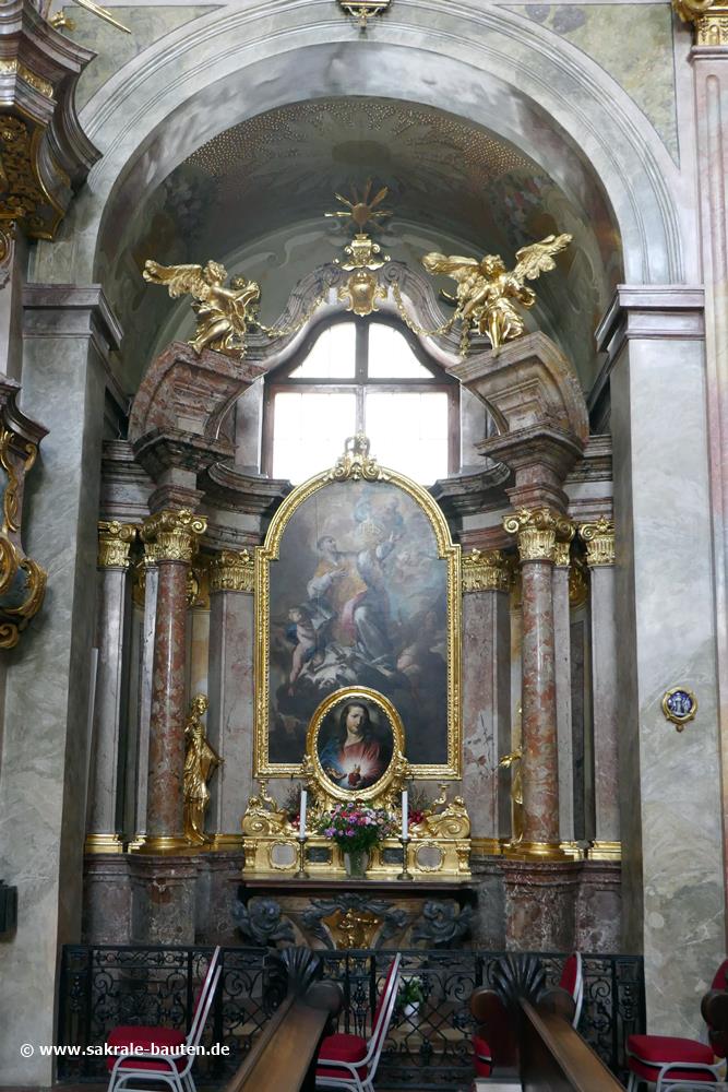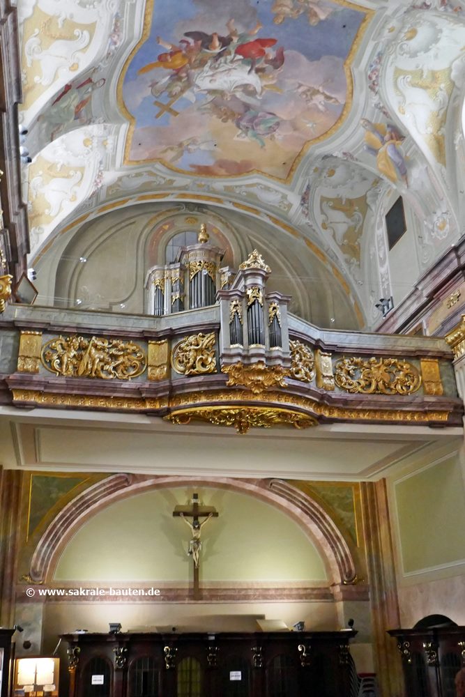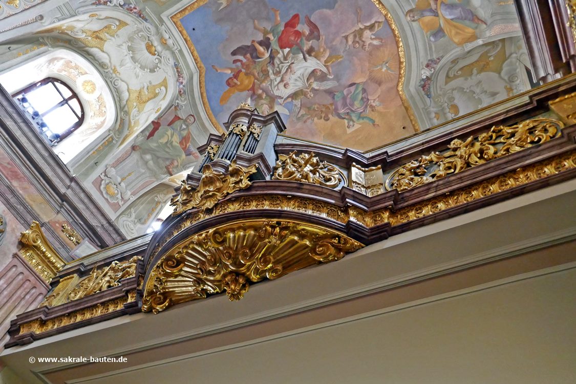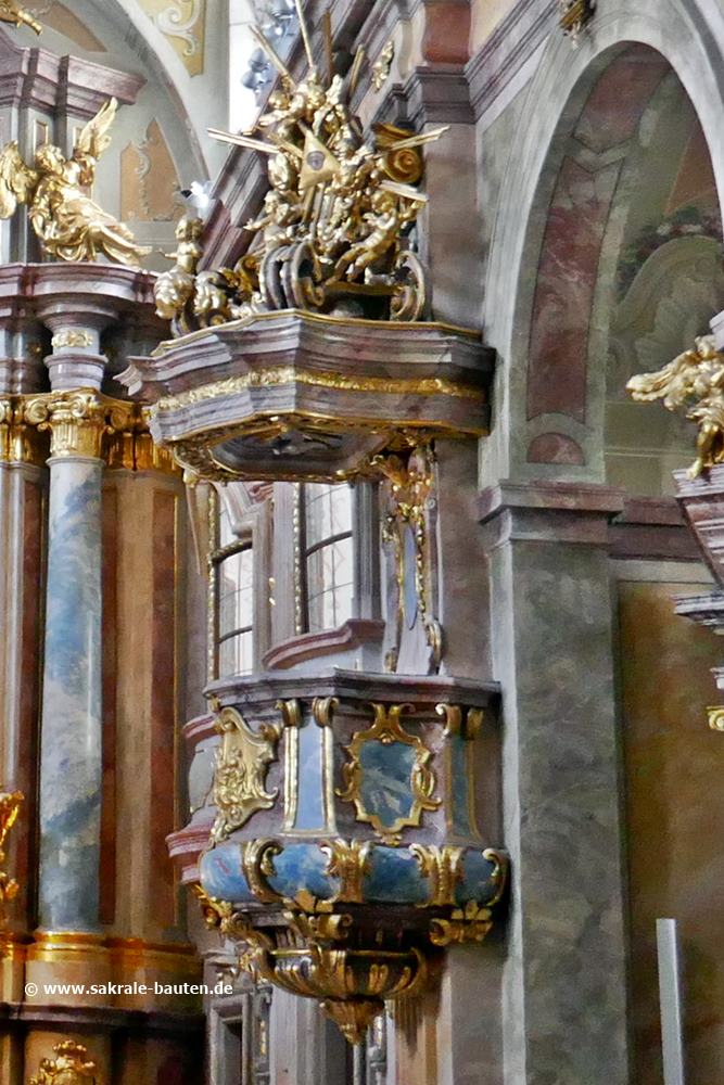 Mitte 18. Jahrhundert entstanden auch Kanzel und Orgel. Stuckmarmorverkleidung und Vergoldung geben dem Innenraum ein festliches Gepräge.