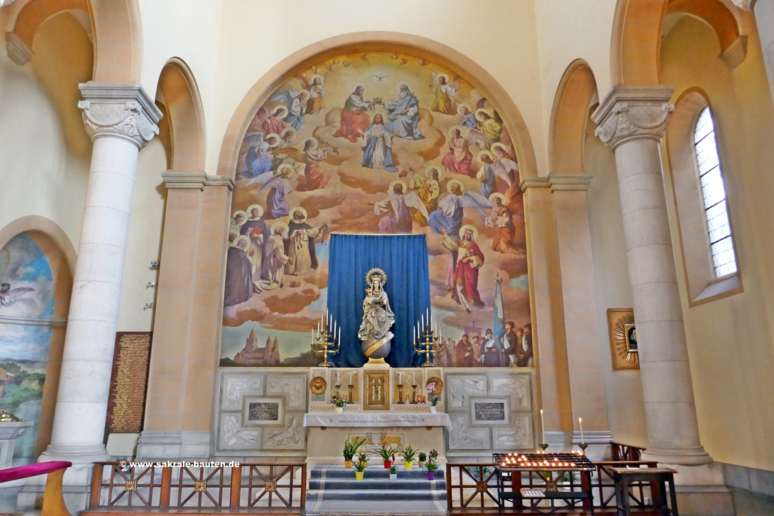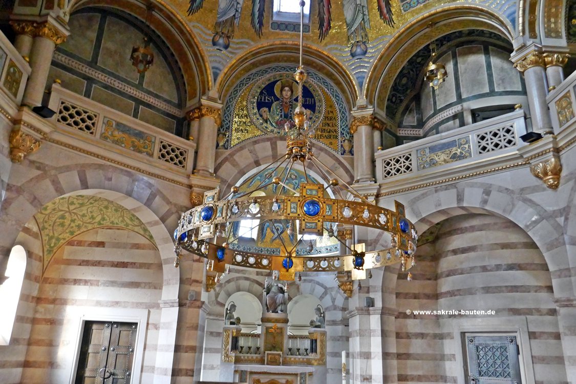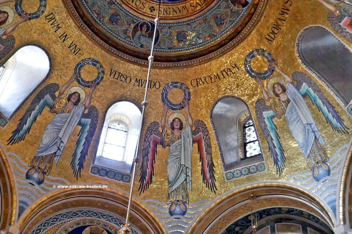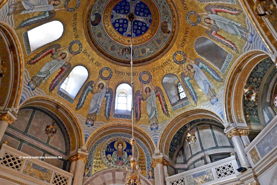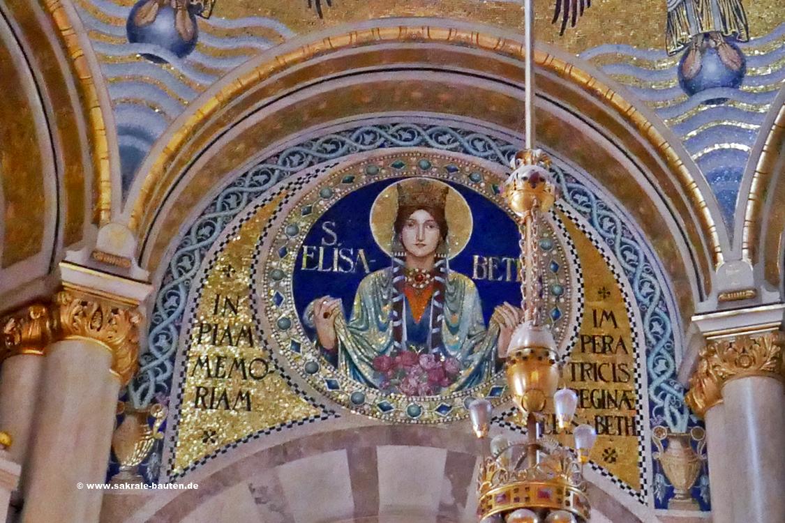 Bild 1: In der Wölbung der Altarapsis befindet sich ein großes Mosaik der heiligen Elisabeth von Thüringen.