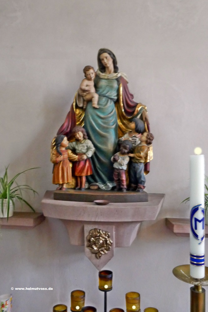 Bild 1: Schutzmantelmadonna diese wurde von dem damals erst 21 Jahre alten Bildhauer Aron Demetz aus Wolkenstein im Gröd nertal/Südtirol geschnitzt.