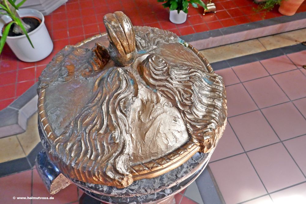 Er hat die Form einer Vase mit zwei angearbeiteten Nasen. Der Holzfuß wurde im 20. Jahrhundert erneuert.