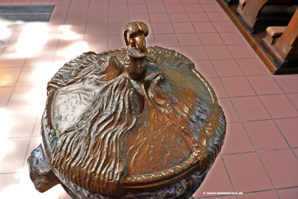 Der Taufstein aus geflammtem und poliertem Sauerländer Marmor stammt vom Anfang des 16. Jahrhunderts.