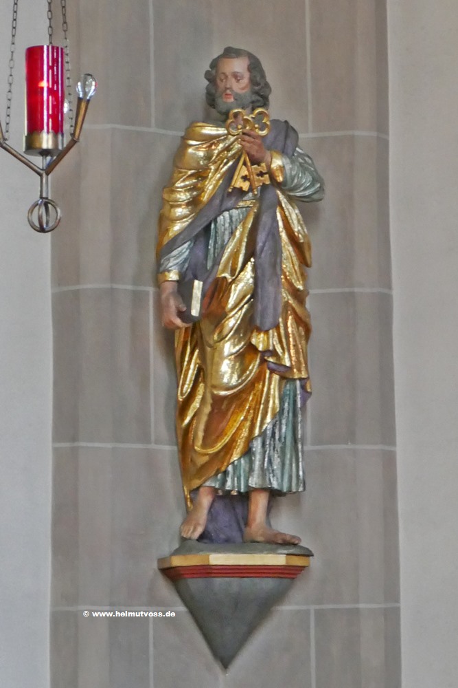 in der Mitte der hl. Cyriakus, der Patron der Filialgemeinde Bruchhausen, und rechts der hl. Nikolaus, der Patron der Filialgemeinde Wulmeringhausen