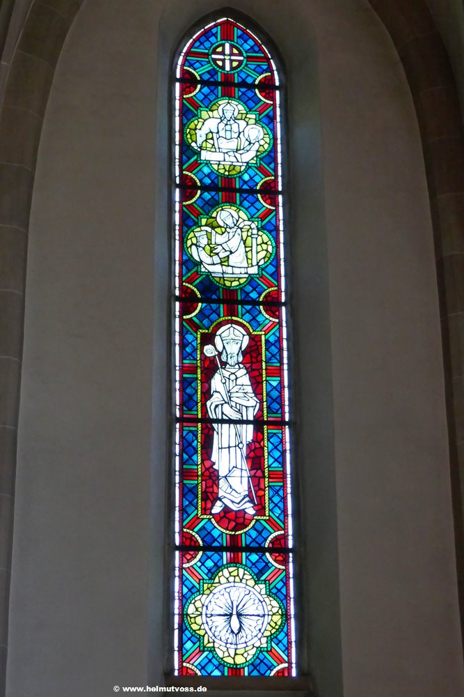 Bild 1: Fenster im Querschiff, Benediktiner. von Sr. Erentrud Trost OSB, 1976.
