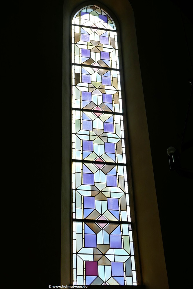 Bild 1: Fenster im Schiff, Geometrisches Ornament. Künstler unbekannt, um 1950.
