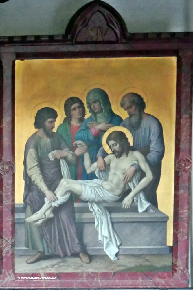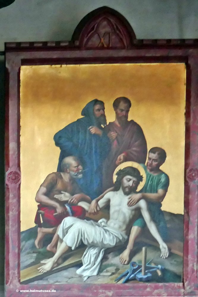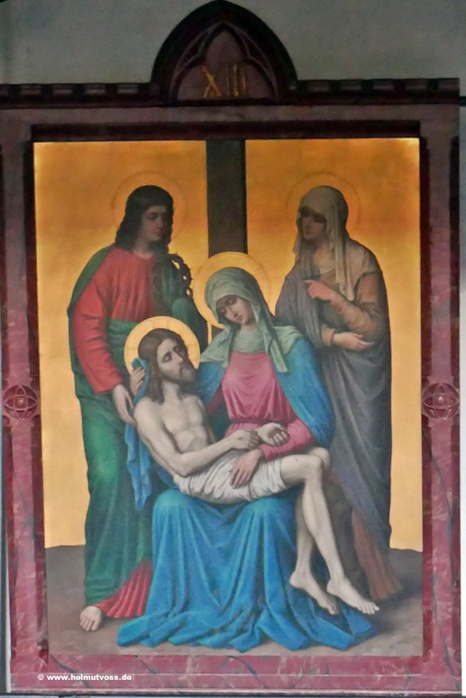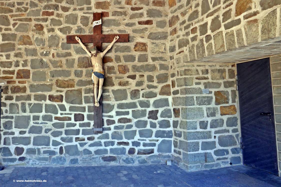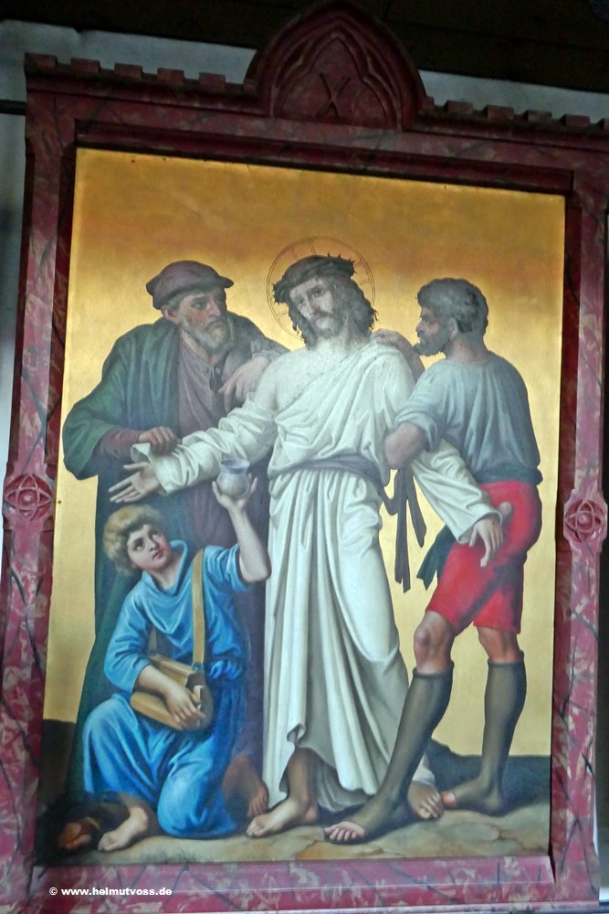 Der Kreuzweg stammt aus der Vorgängerkirche er besteht aus bemalten Bronzetafeln und ist sehr wertvoll.