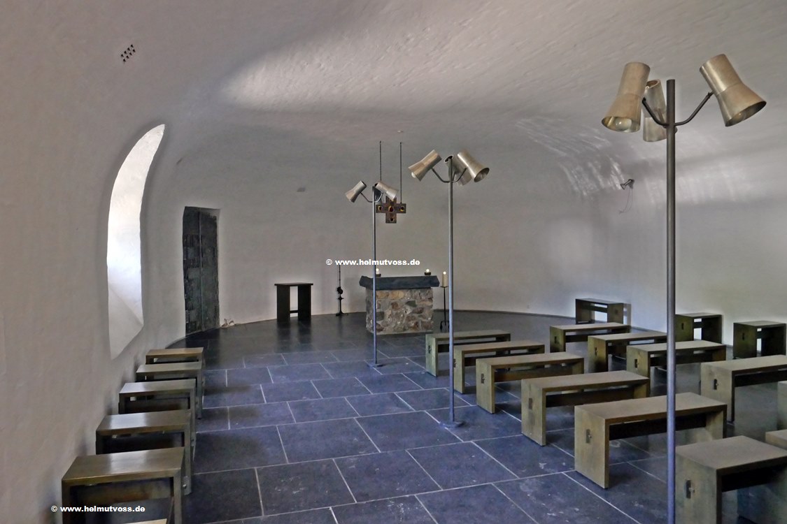 Ein weiterer würdiger Gebetsraum ist die Krypta. Hier geht es hoch zum Kirchenraum.