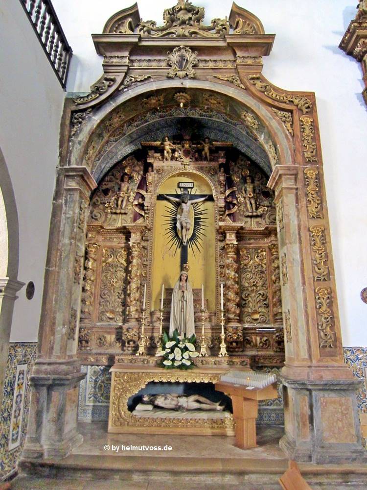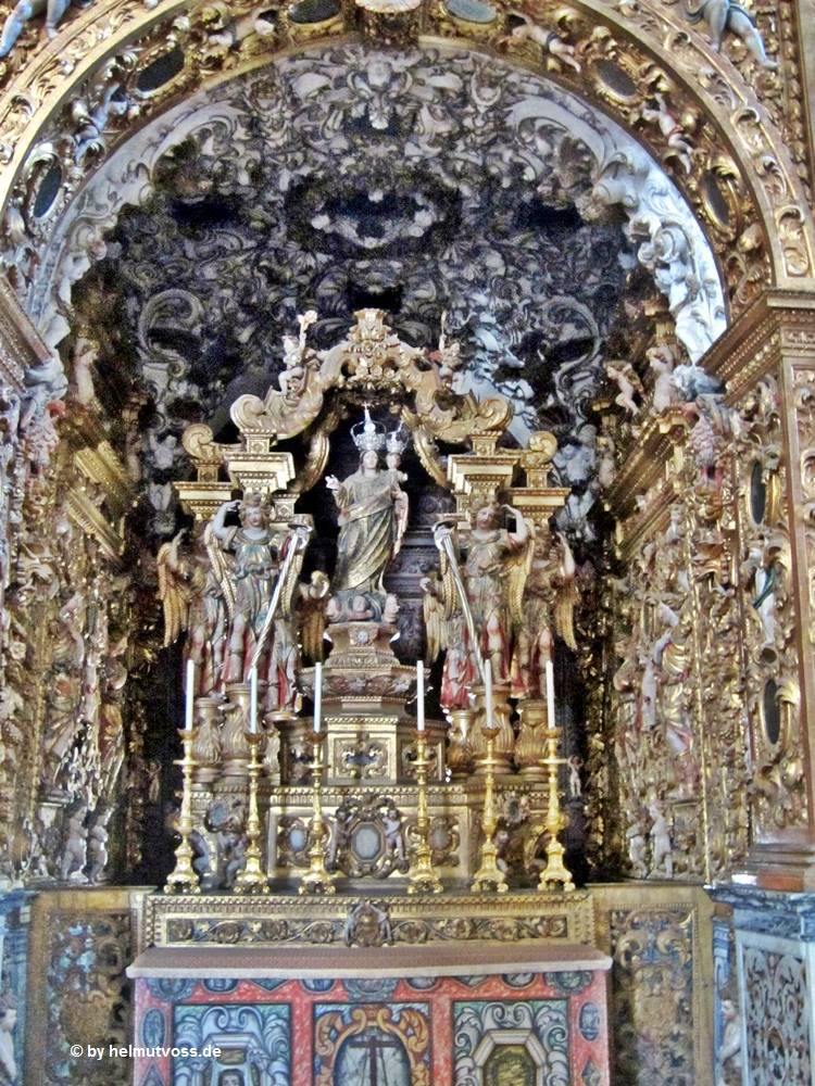 Die barocke Kapelle der Freudenreichen Jungfrau (Nossa Senhora dos Prazeres); ein kleines barockes Schmuckstück mit viel Schnitzwerk und Marmorverzierungen,