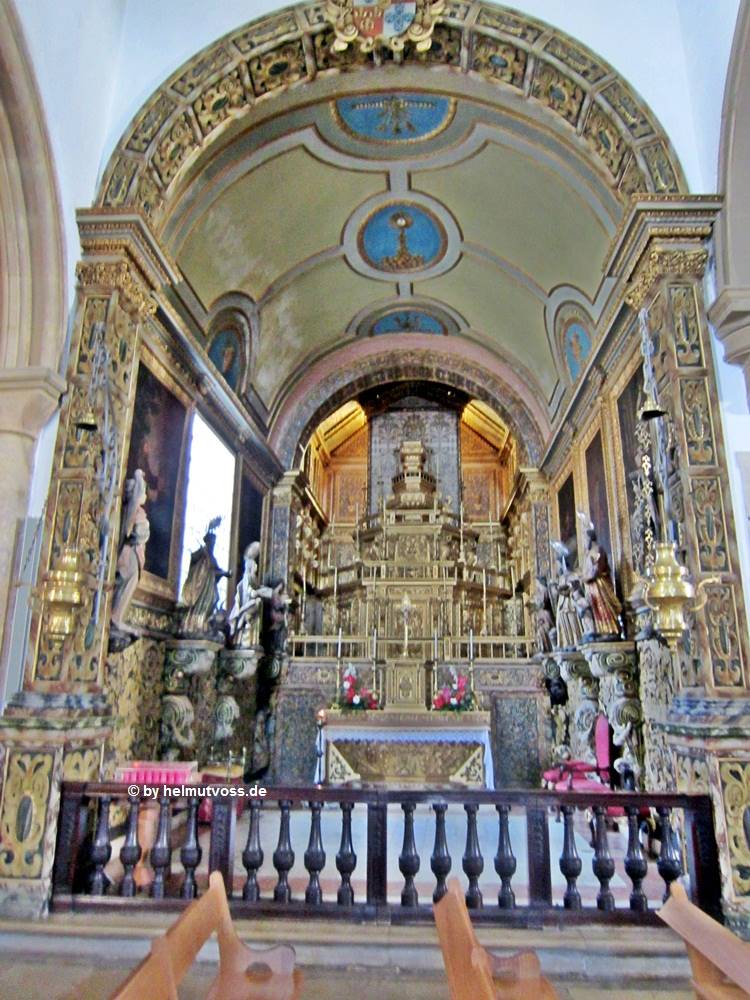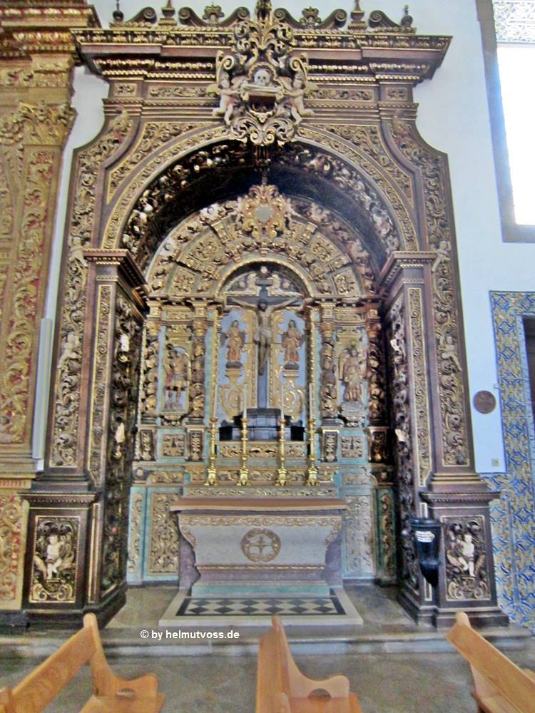 Rechts vom Hauptaltar sticht an der Nebenkapelle des Santo Lenho (die Heilig-Kreuz Kapelle) in Blattgold verkleidet das prächtige Schnitzwerk, enthält einige bedeutende Reliquien.