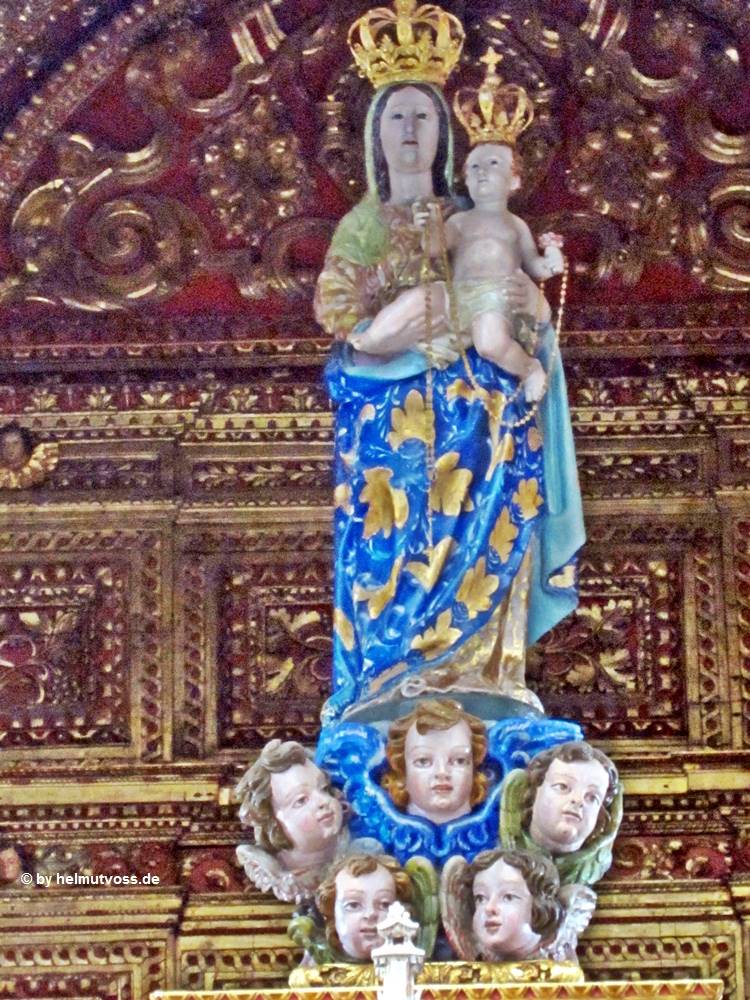 Links und rechts an den Wänden zwei Kerzenhalter mit Negerfiguren.Unsere Liebe Frau vom Rosenkranz ist der Schutzpatron von mehreren Orten auf der ganzen Welt