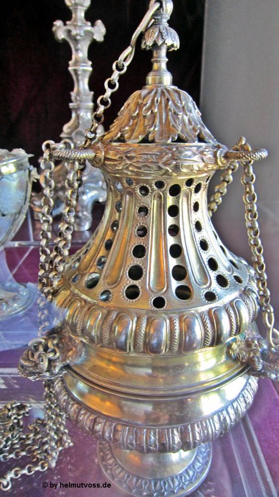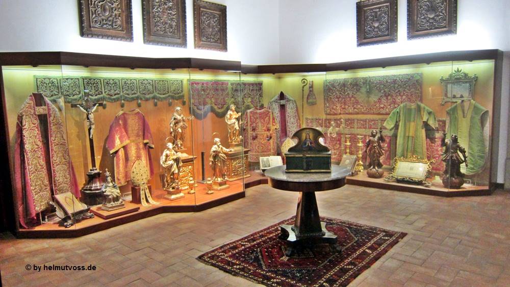 Eine schmale Treppe führt hoch zur Empore hier sind mehrere Räume mit sakralen Ausstellungsstücken zu bewundern. Sowie herausragende Archivalien aus dem Bestand der katholischen Kathedrale.