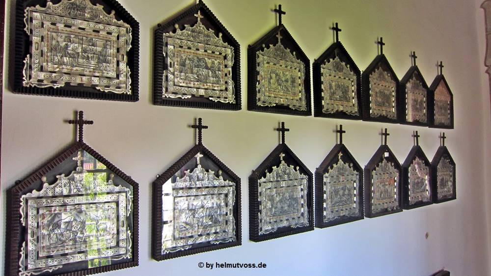 Bild 1: Die 14 Kreuzwegstationen, in mittelalterlicher Stilart, auf antiken Silberplatten.
