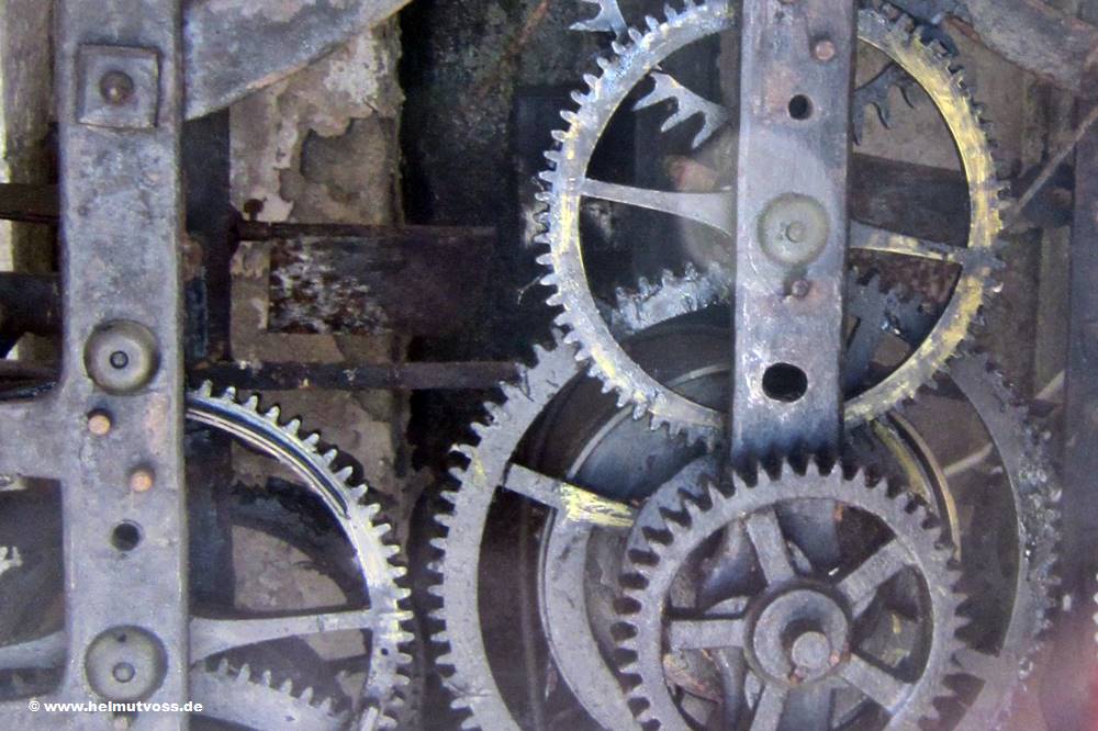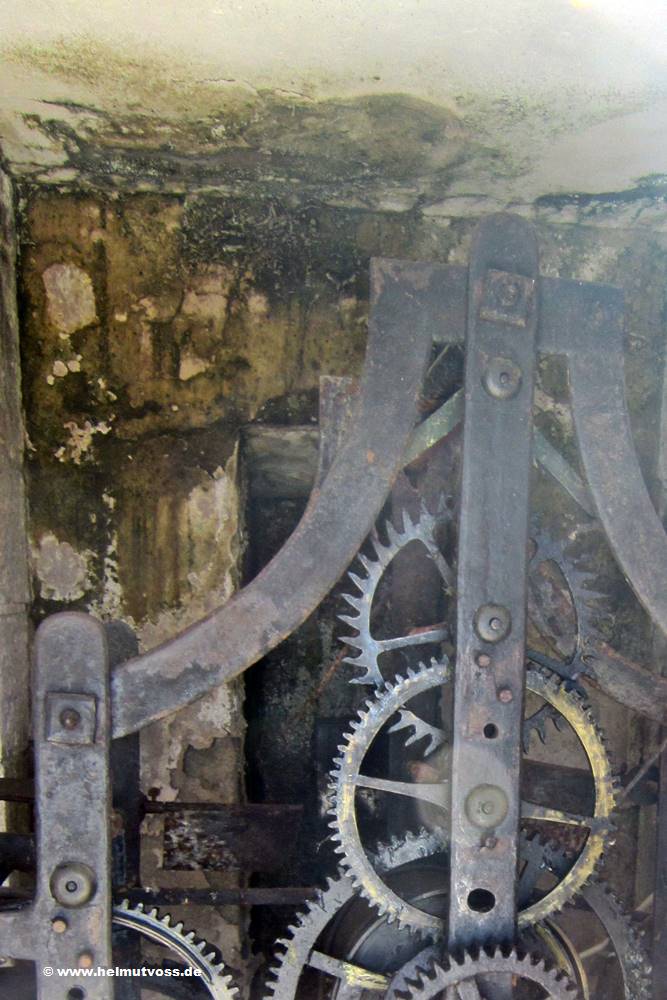 Bei den kleineren Glocken wird der Uhrschlag durch Außenhämmer erzeugt