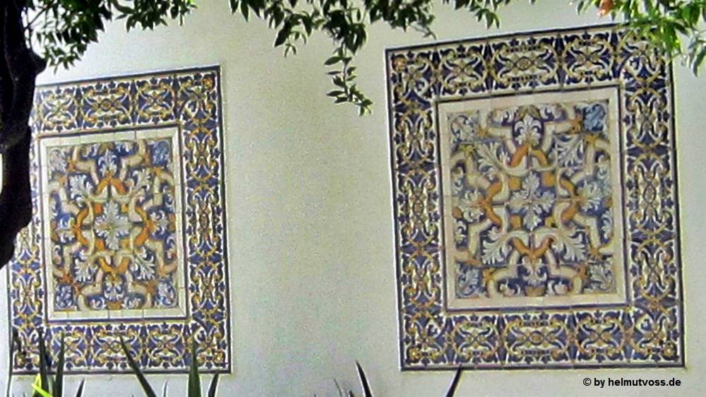 An der Kapelle im Garten sehr schöne Azulejos mit Lilien, sie sind Sinnbild der Heiligen Maria. Durch den gotischen Toreingang, gelangt man in eine wunderschöne Kapelle.