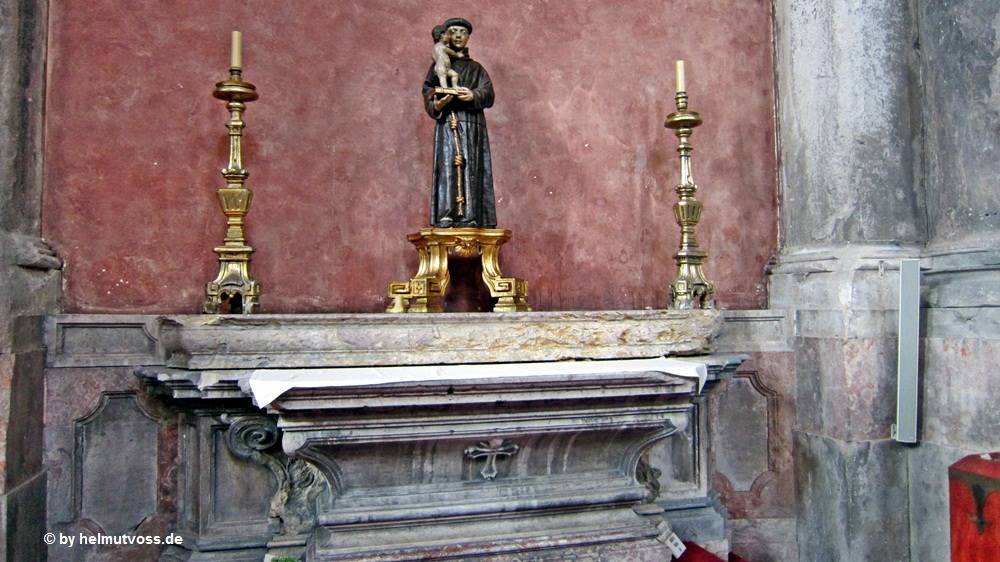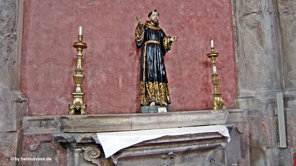Die drei Altäre auf der rechten Seite des Kirchenschiffes, 1) der Heilige St. Joseph, 2) der heilige St. Franziskus.