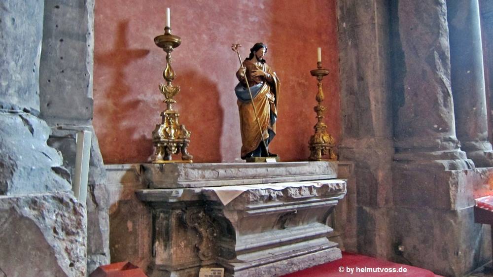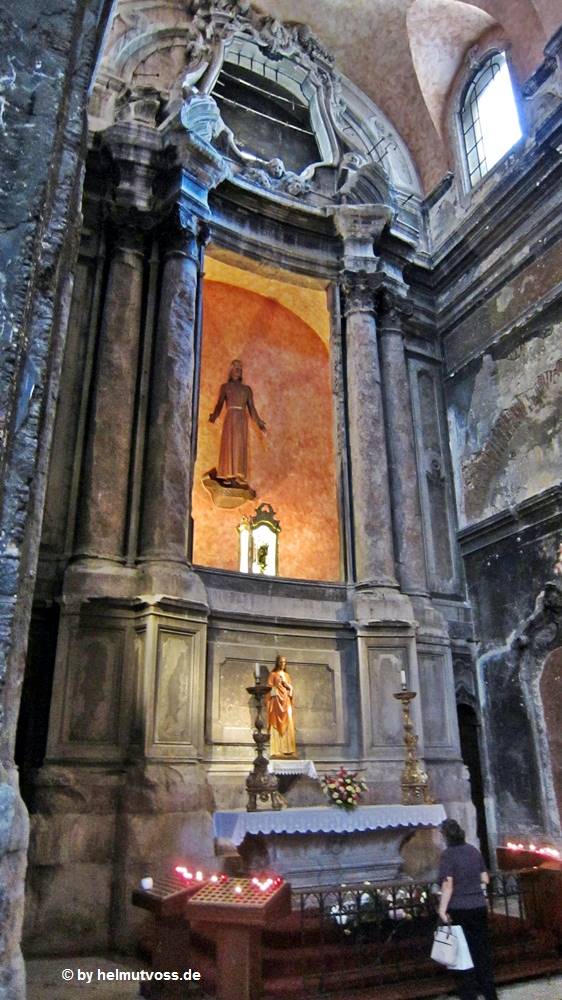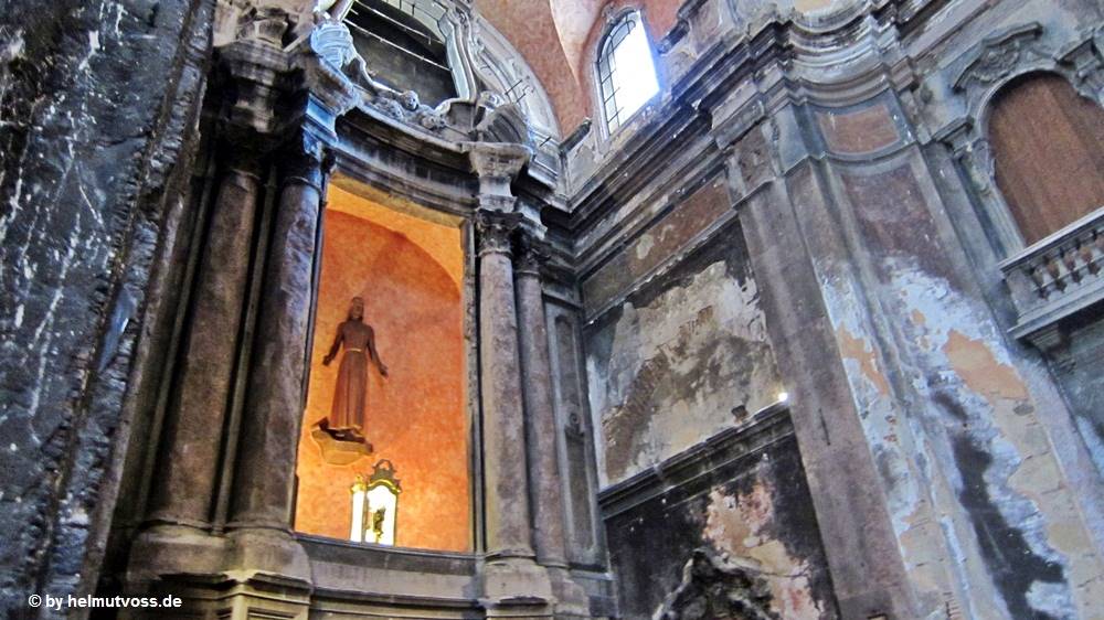 Was übrig blieb, war nur der nackte bunte Marmor an den Wänden und die Unkenntlichkeit der Marmorstatuen neben dem Altar.