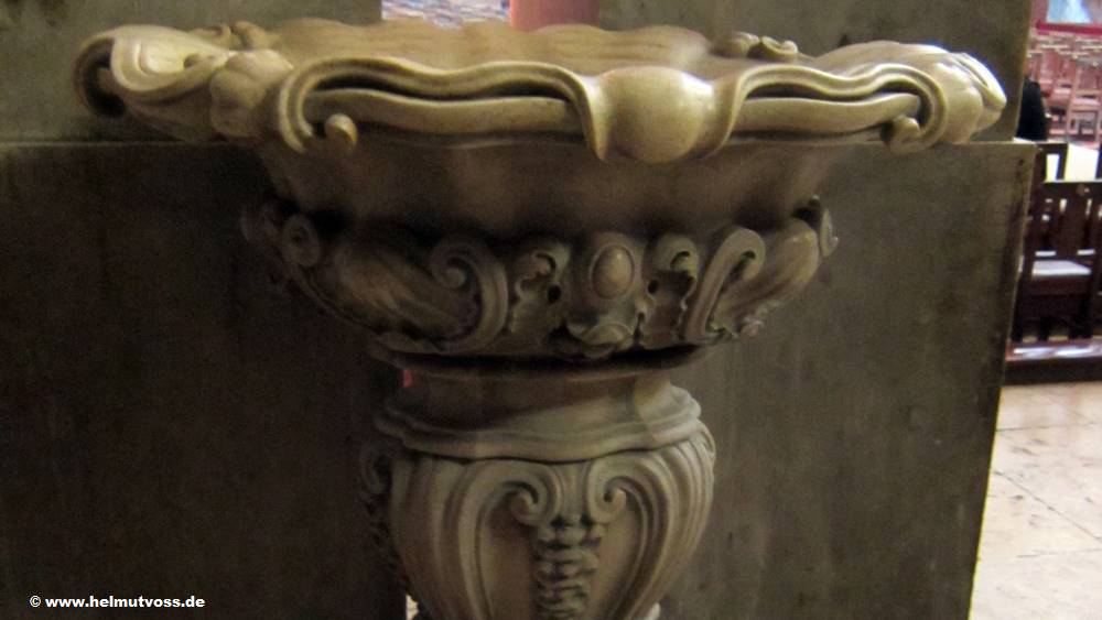 Bild der Muttergottes der Barmherzigkeit. Taufbecken aus manuelinischer Zeit (16. Jh.).