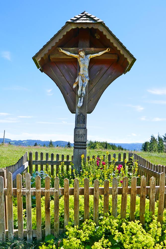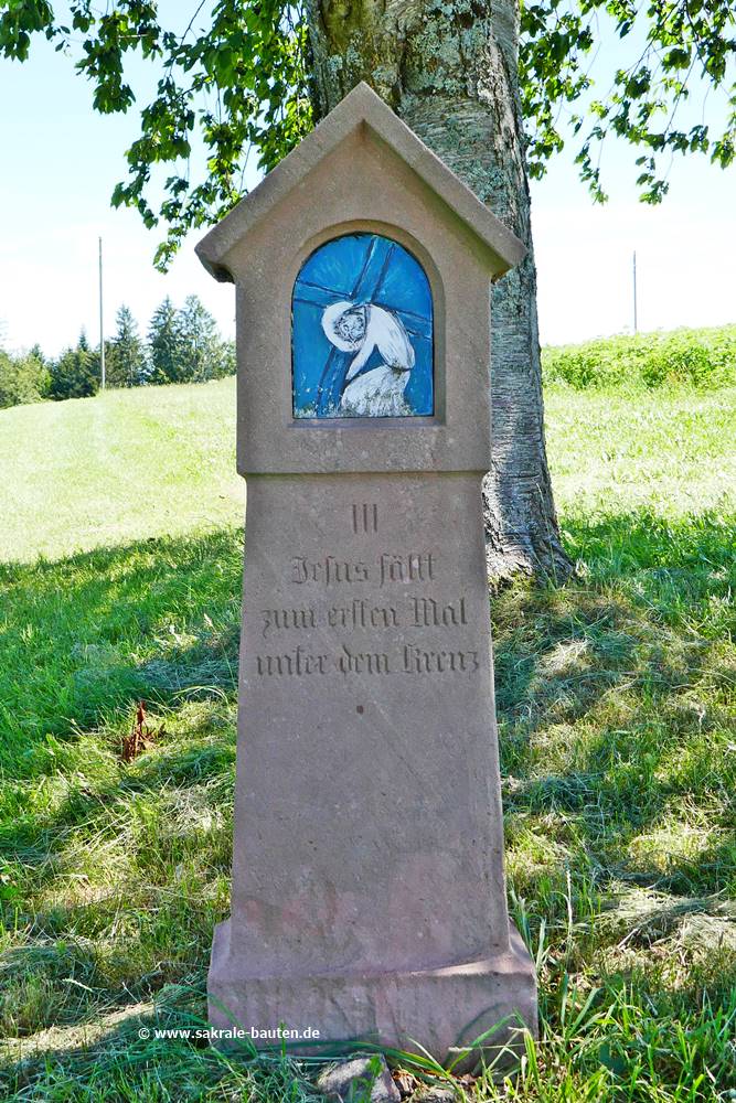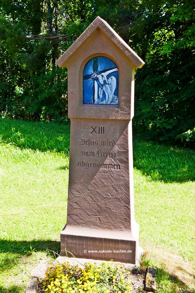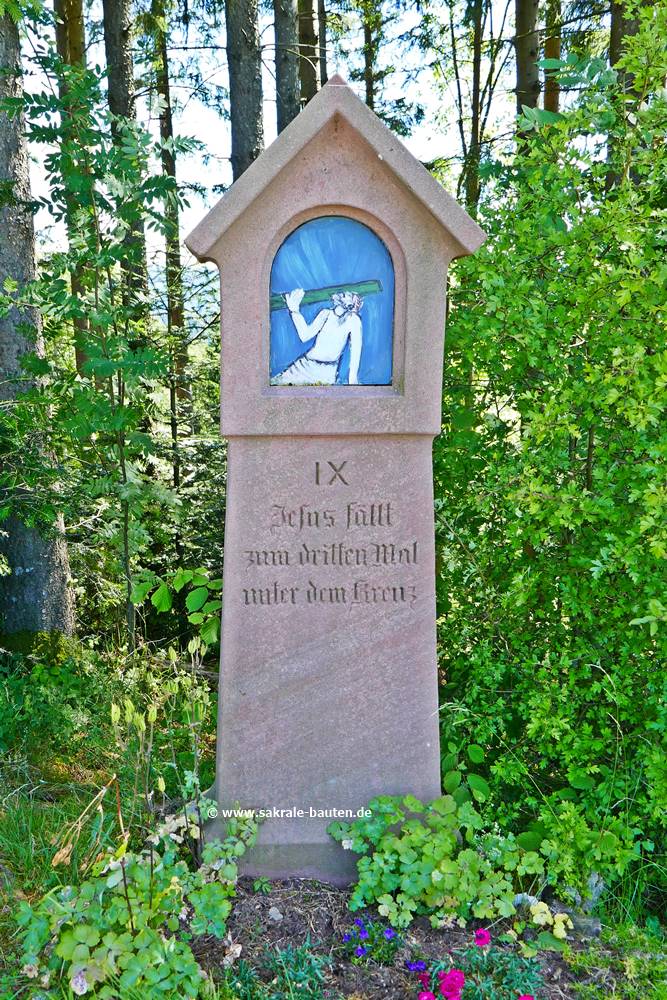Südwestlich der Wallfahrtskirche führt ein Kreuzweg mit 14 Stationen 3 km hoch zum zum Lindenberg.
