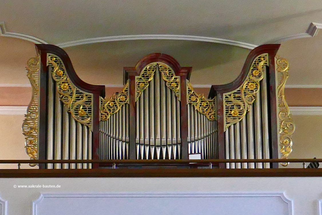 auf der besonders niedrigen Empore eingebaut wurde. Das Gesamtkonzept (Register, Manuale, Stimmung, Technik) orientiert sich an Orgeln des Barock.