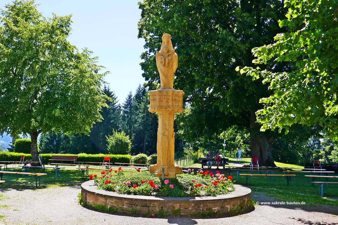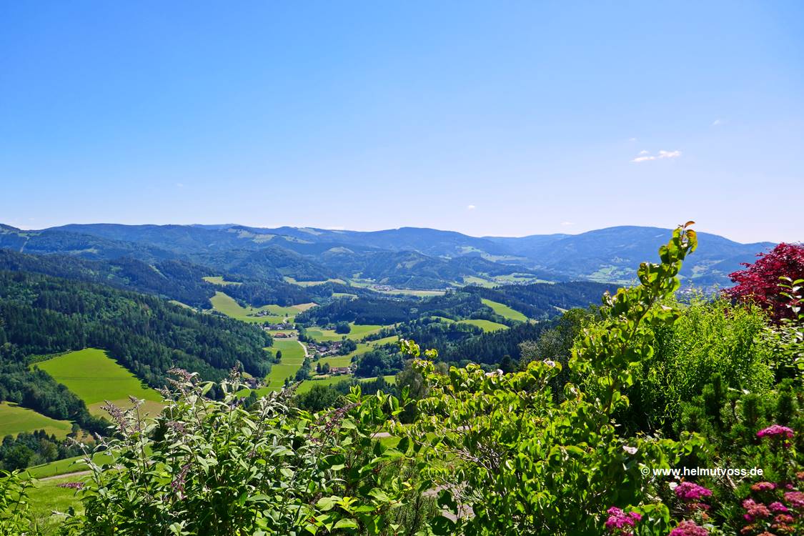 Die Aussichtsplattform um die Marienstatue herum bietet eine unvergleichliche Panoramasicht hinunter ins Ibental.