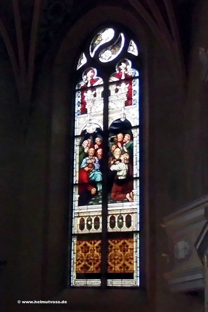 Bild 3: Die Darstellung von Ostern und Pfingsten kann man in der Reihenfolge auf den anderen beiden Fensterbildern betrachten.